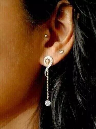 2Ct Round Cut Lab Created Diamond Drop/Dangle Earrings 14K Two Tone Gold Plated