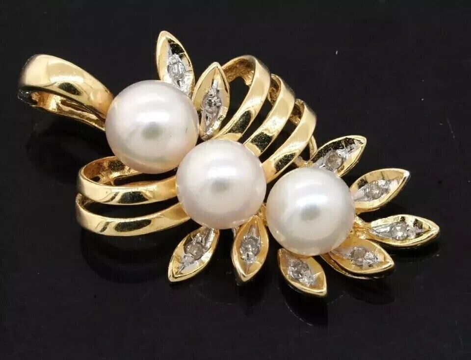 2Ct Round Cut Lab Created Diamond & Pearl Vintage Pendant 14K Yellow Gold Plated