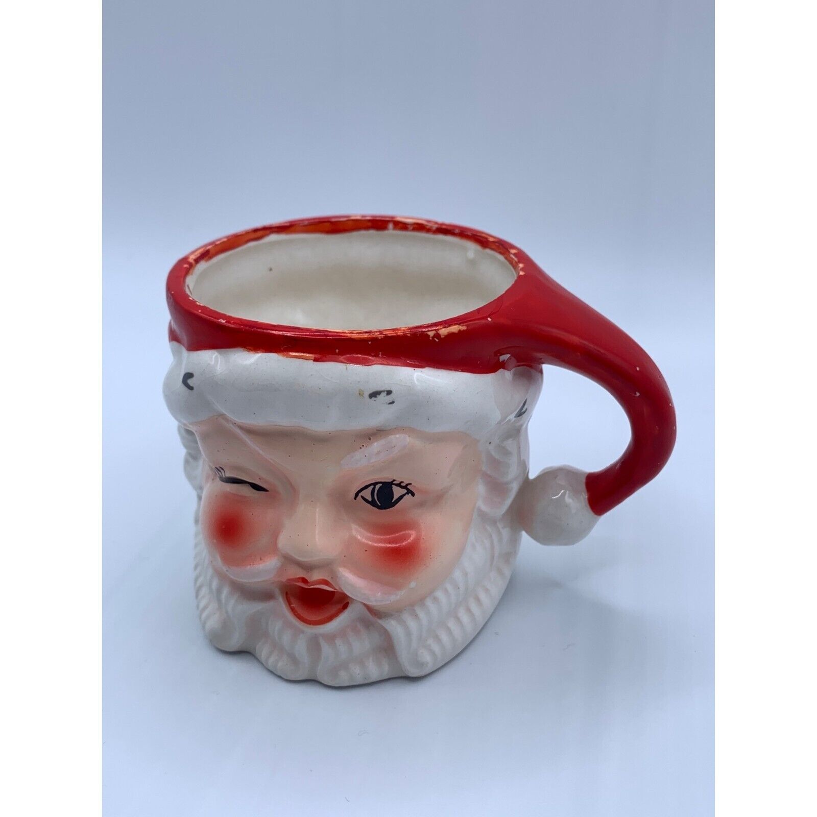 Vintage Santa Claus Ceramic Mug Winking Face Christmas Holiday Decor Cup 3" 50's
