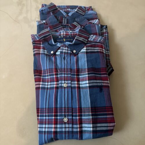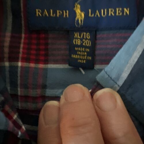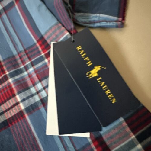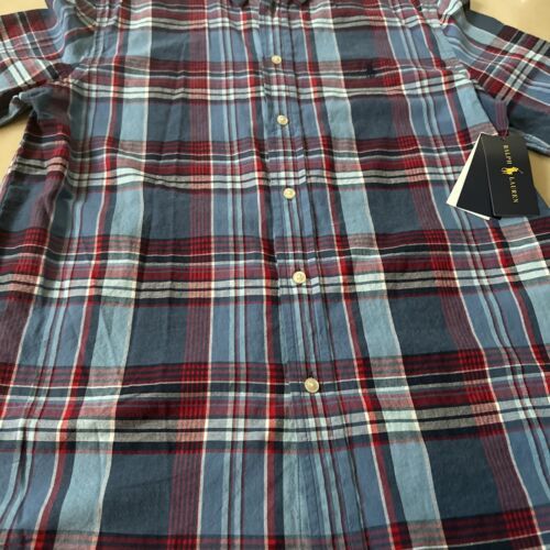 RALPH LAUREN POLO BOYS BUTTON DOWN SHIRT XL/TG 18/20 TARTAN PLD SUMER BLU MU NWT