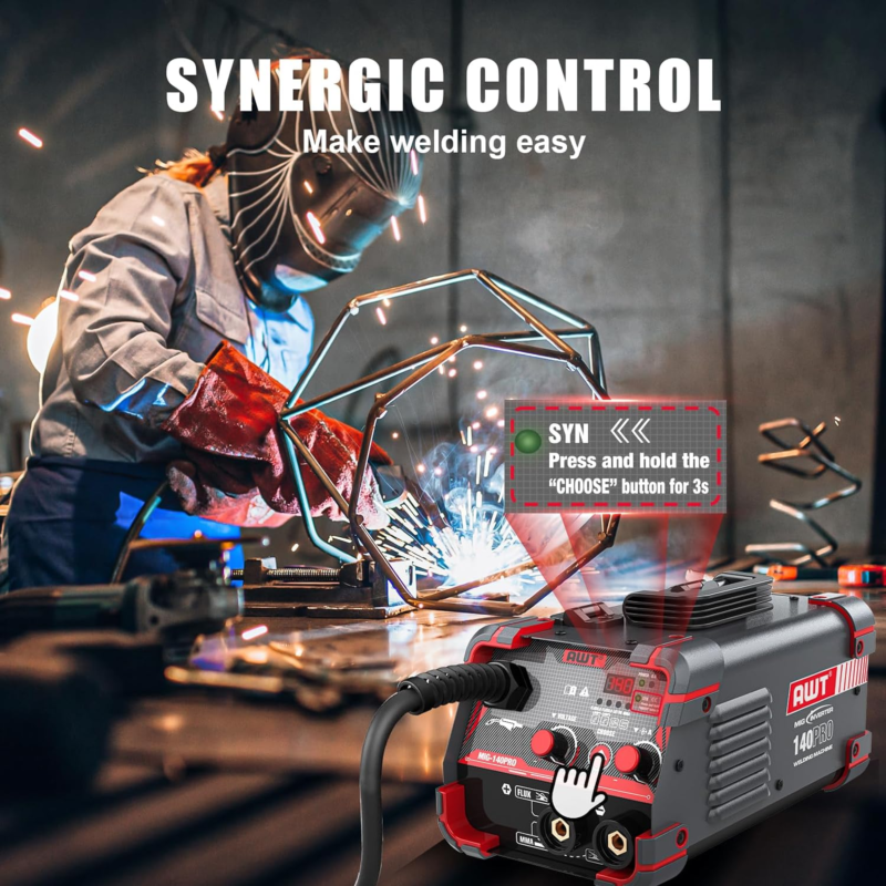 Synergic control Manual control: in MIG synergic control, The wire feed speed and voltage will be auto fitted by adjusting wire diameter. In MIG manual control, current can be adjusted according to your usage habits.Easy to use for beginners or professional welder.