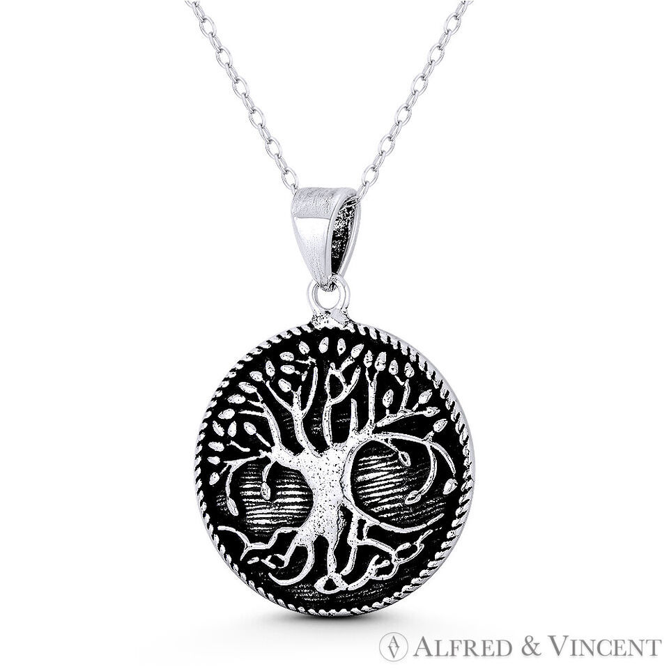 The featured pendant is cast in oxidized-finish .925 sterling silver and showcases a 24mm (0.9in) Celtic Tree-of-Life charm finished w/ a sturdy bail that will accommodate most chain sizes.