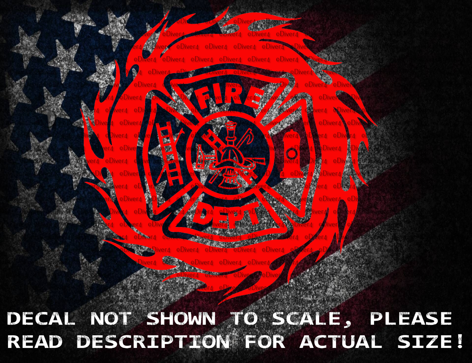 Firefighters Maltese Cross Encircled by Flames Vinyl Decal US Made US Sold