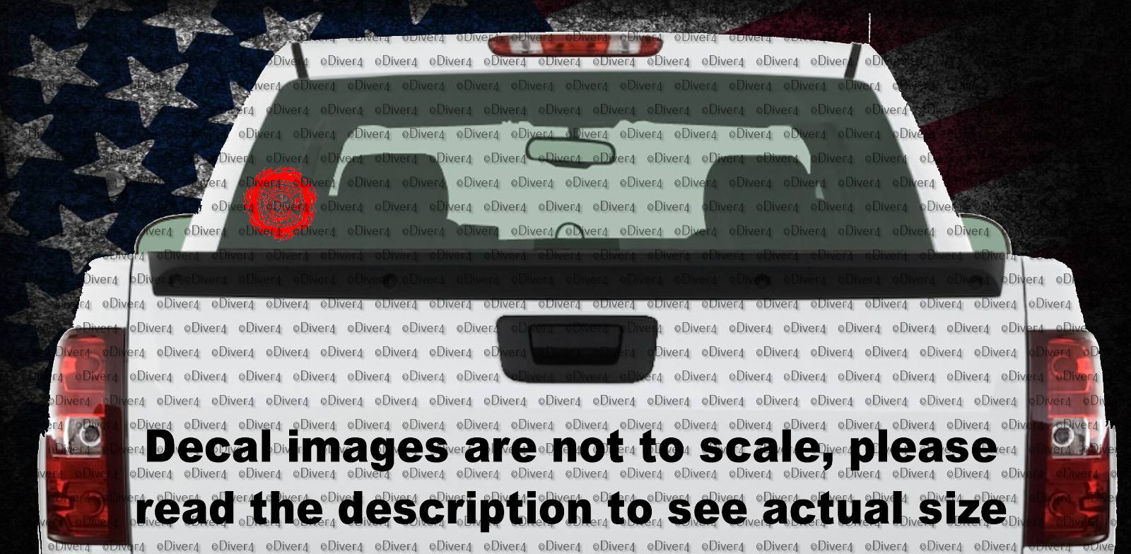 Picture is for reference to show how the sticker will look on a vehicle rear window and may not be to scale.