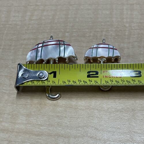 Vintage Umbrella Brooch Pin Set Of 2 Plaid Red Green Enamel Estate Find KG JD