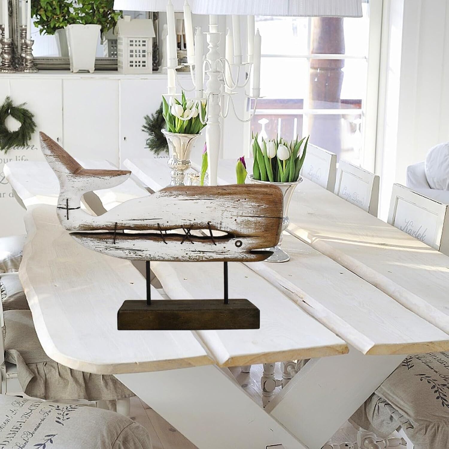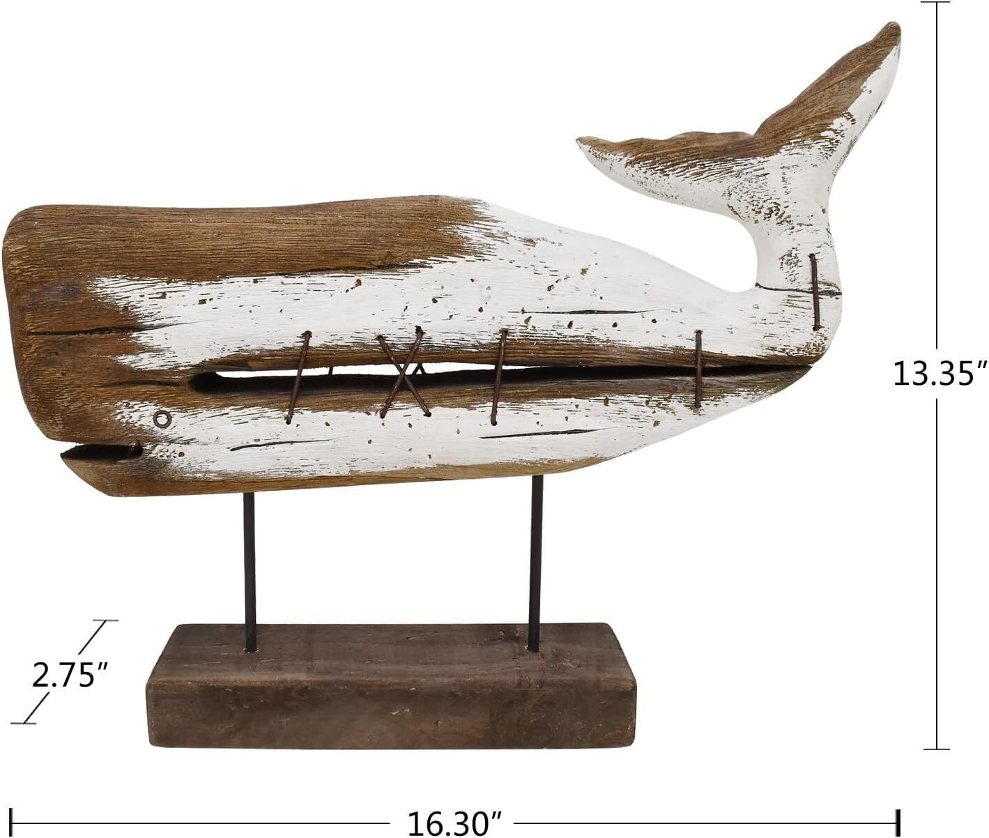 Well Made: Wooden whale sculpture is made of rough wood, perfect summer display, beach themed decor and beach table top decor.