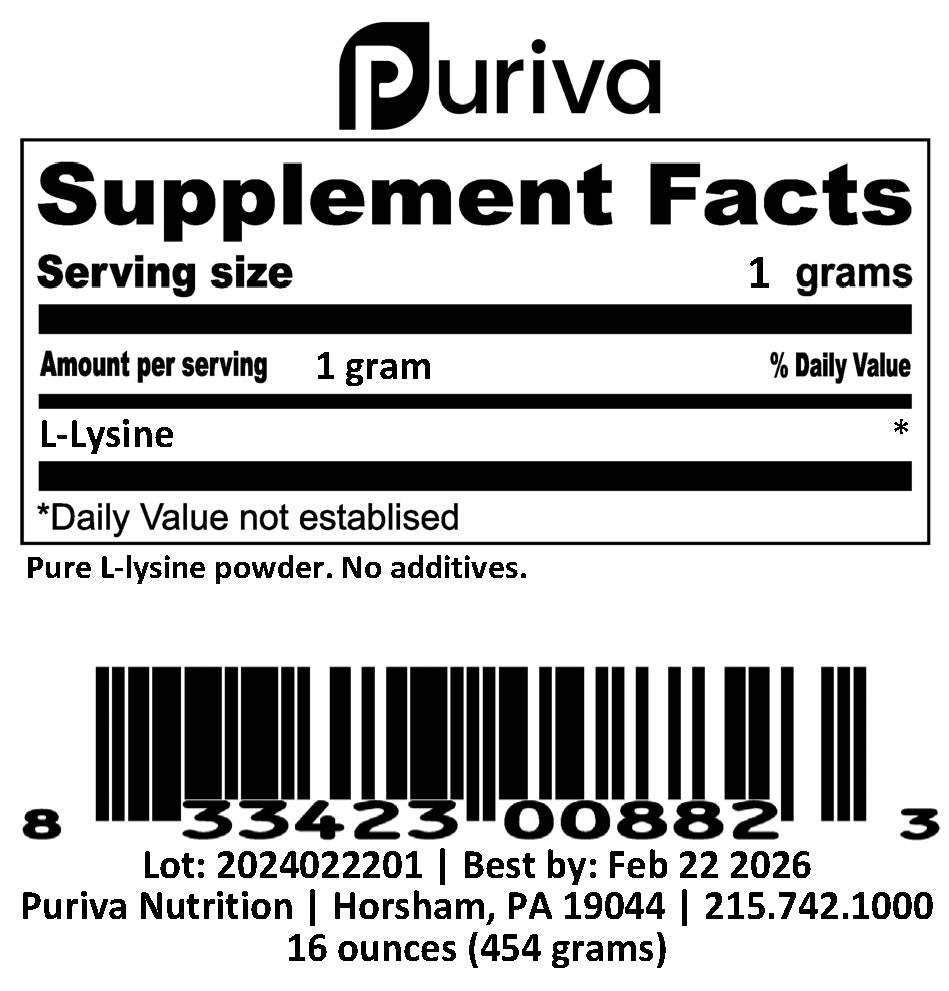 L-Lysine powder, 1 pound, by Puriva Nutrition