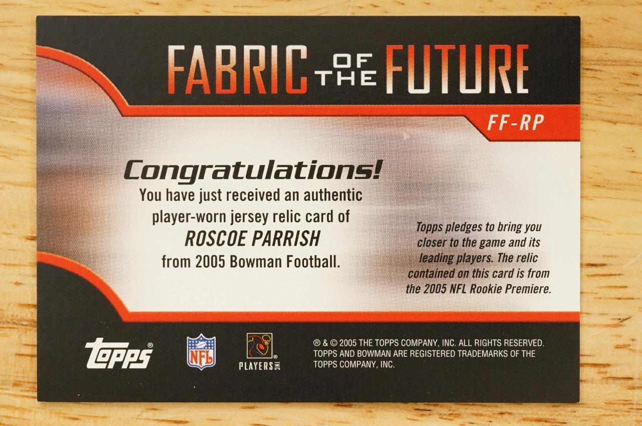 2005 Bowman Fabric of the Future Roscoe Parrish #RP Rookie RC Buffalo Bills. Raw and Ungraded. No smoke or pet odor.