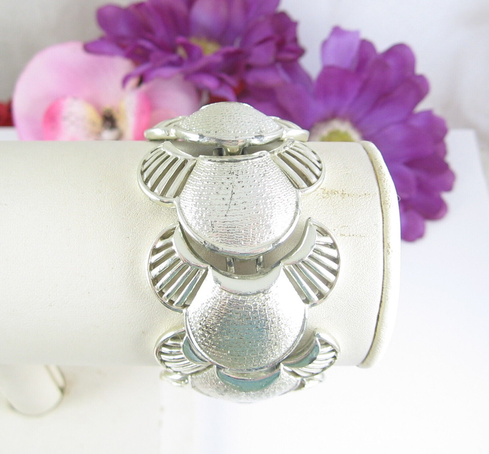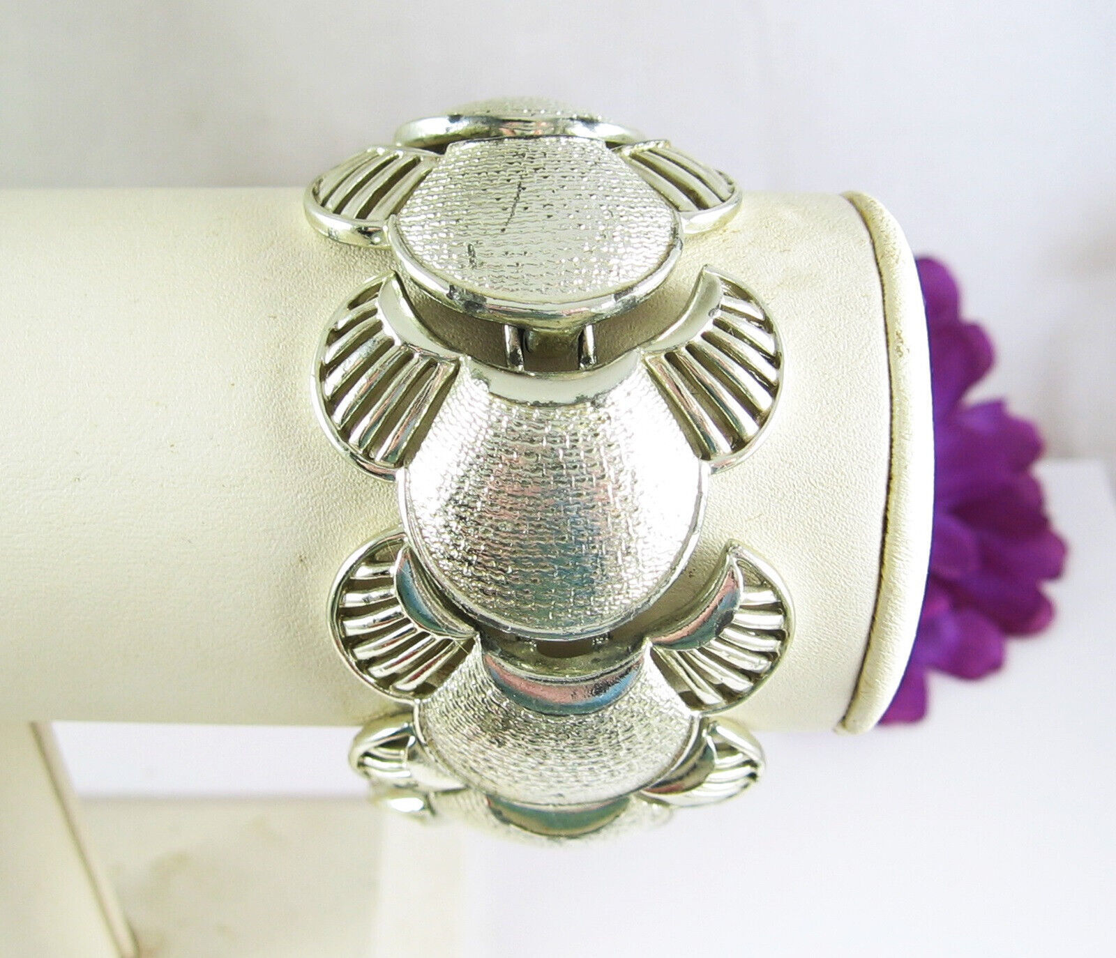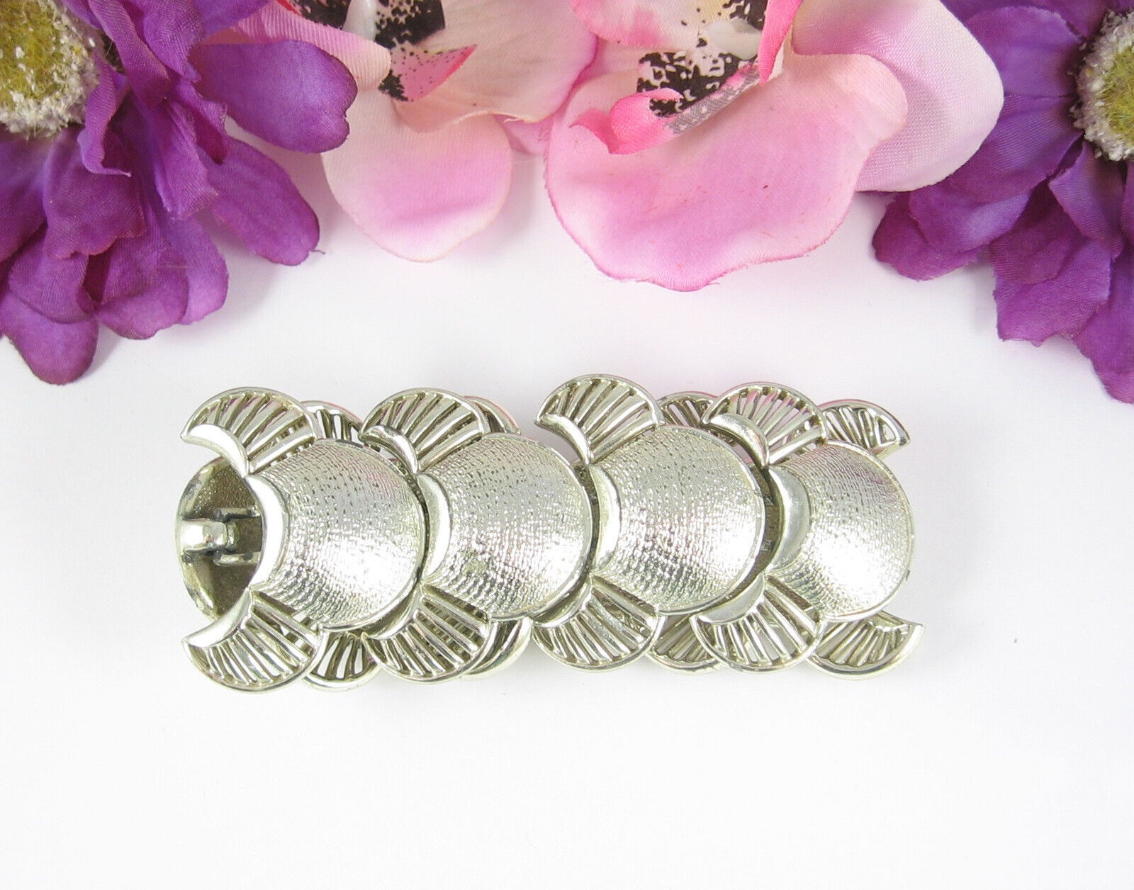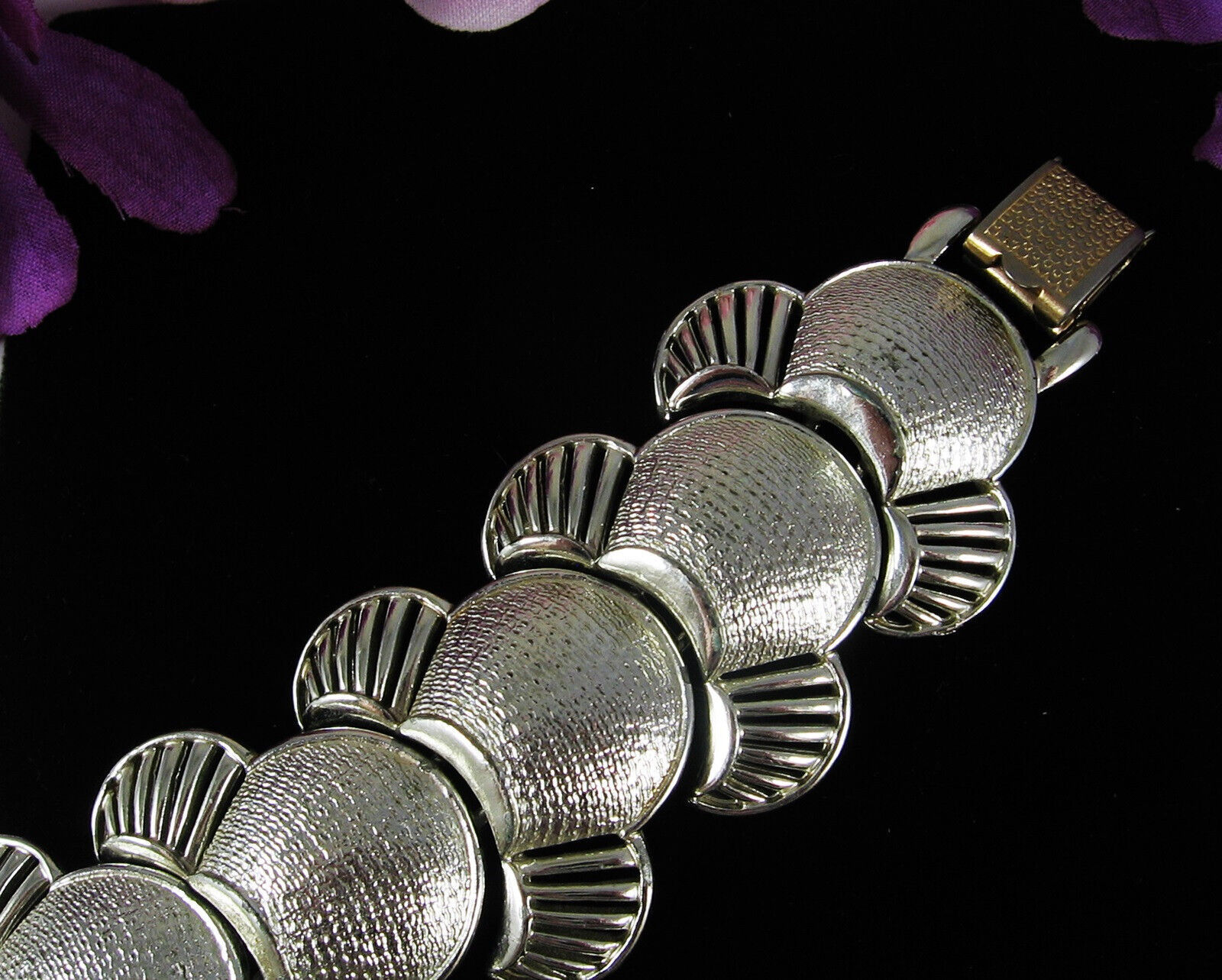 CORO Pegasus Vintage BRACELET Shell & Fan Design Silvertone Metal LINKS 7.5"