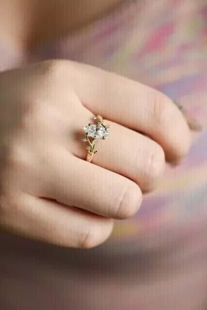 2Ct Marquise Cut Lab Created Diamond Women Wedding Ring 14k Yellow Gold Plated
