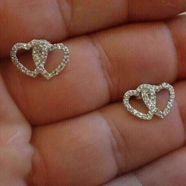 1Ct Round Lab-Created Diamond Double Heart Stud Earrings 14k White Gold Plated