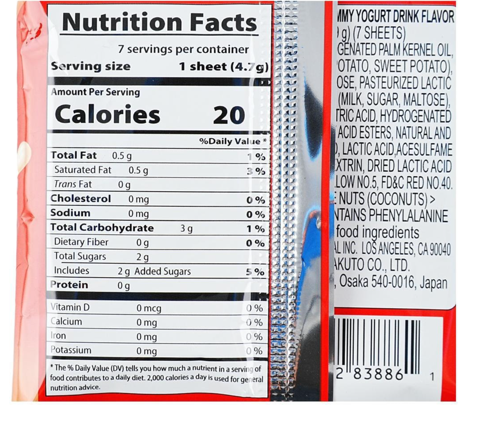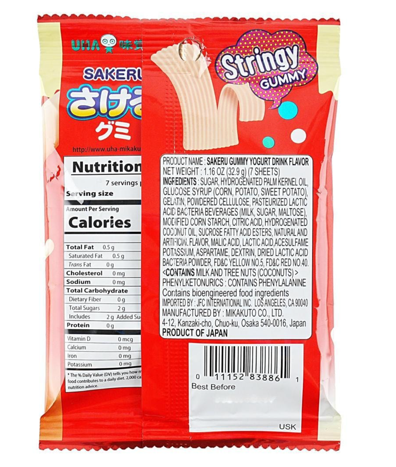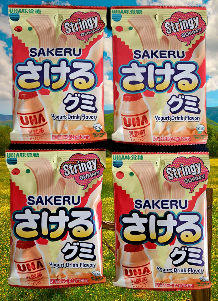 The listing is for UHA Mikakuto Japanese Sakeru Yogurt Gummy Candy 7 Pieces 32.9g - Pack of Four (4)