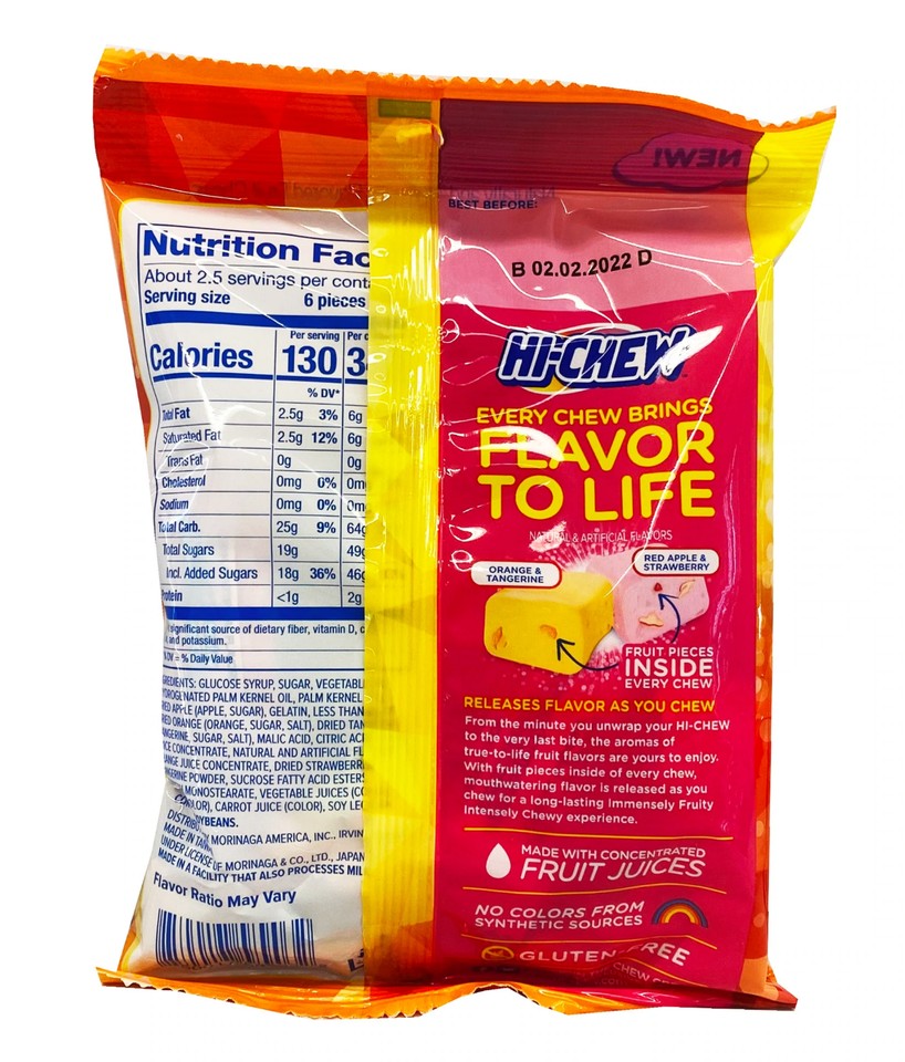 Hi-Chew is a very famous fruity chewy candy from Japan. This Hi-Chew chewy candy has mixed with naturally flavored concentrated juice and real fruit pieces inside. It boasts an elegant aroma and a balanced sweet and sour all naturally taste that makes you will like it.