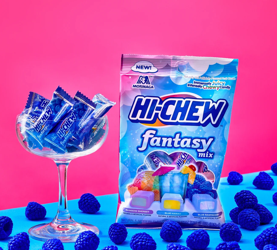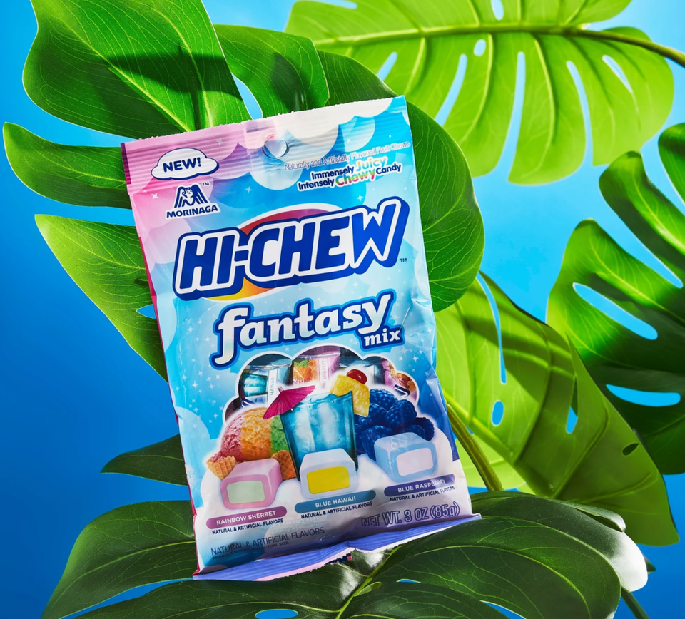 Introducing the new Hi-Chew Peg Bag Fantasy Mix, a 3 oz bag of pure imagination and deliciousness. This mix is a departure from the brand's usual fruit flavors, offering unique and nostalgic sensations that will delight both Hi-Chew fans and candy enthusiasts. Each chew features a double-layer technology that will take your taste buds on an unforgettable journey. The Fantasy Mix comes in a colorful container and includes Rainbow Sherbet with raspberry, lime, and orange flavors, Blue Hawaii with sweet citrus and pineapple notes, and classic Blue Raspberry. Hi-Chew has been crafting fruity treats since 1975, when it was created by Morinaga Company, a confectionery company founded in 1899.