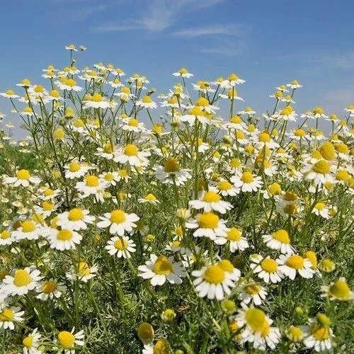 COMMON GERMAN CHAMOMILE is a fast-growing annual that will start producing a full bloom of tiny white daisy like flowers in about 2 months from sowing. You can start harvesting immediately by cutting the flowers with some stem as soon as they appear. They will keep growing back for a continuous harvest until late fall. Just let dry in the sun on a screen or towel. Remove dried chaff, leaves, stems. Store centers in a airtight container until it's tea time. Also used in hair rinses, soaps and shampoos. Easy to grow from seed. Patio containers or the garden. Anywhere with full sun and light steady water. A little organic fertilizer will help if soil is poor. German Chamomile will reseed itself if a few later flowers are left alone to live out they natural life cycle, die and drop seed that will sprout next spring in roughly the same place.2000+seeds per order. Thank You!