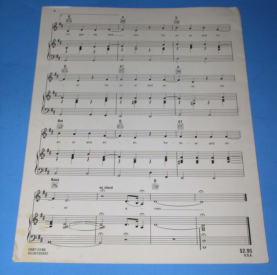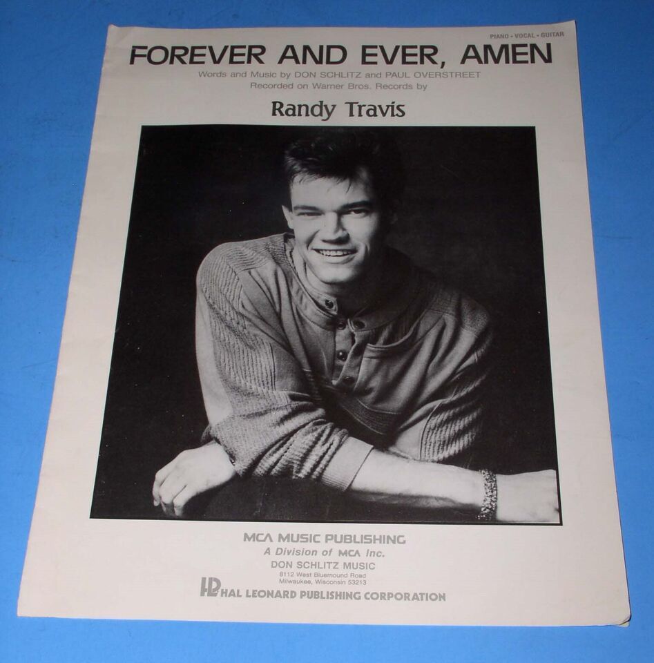This is the original, vintage sheet music for the Randy Travis song, "Forever And Ever, Amen". Dated 1987 MCA Music Publishing and Hal Leonard Publishing Corp.