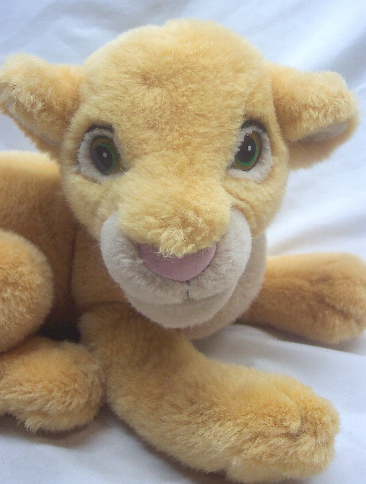This is a Walt Disney Lion King VINTAGE YOUNG SIMBA LION Plush Stuffed Animal TOY. It is 7 1/2 inches tall and 11 inches long from front to back. It is in Great Condition. It is CLEAN. No Stains or Tears. It does not have a tush tag, but I believe it was made for The Disney Store. Combine auctions to save on shipping. Please contact me if you need to make other payment arrangements. EAG