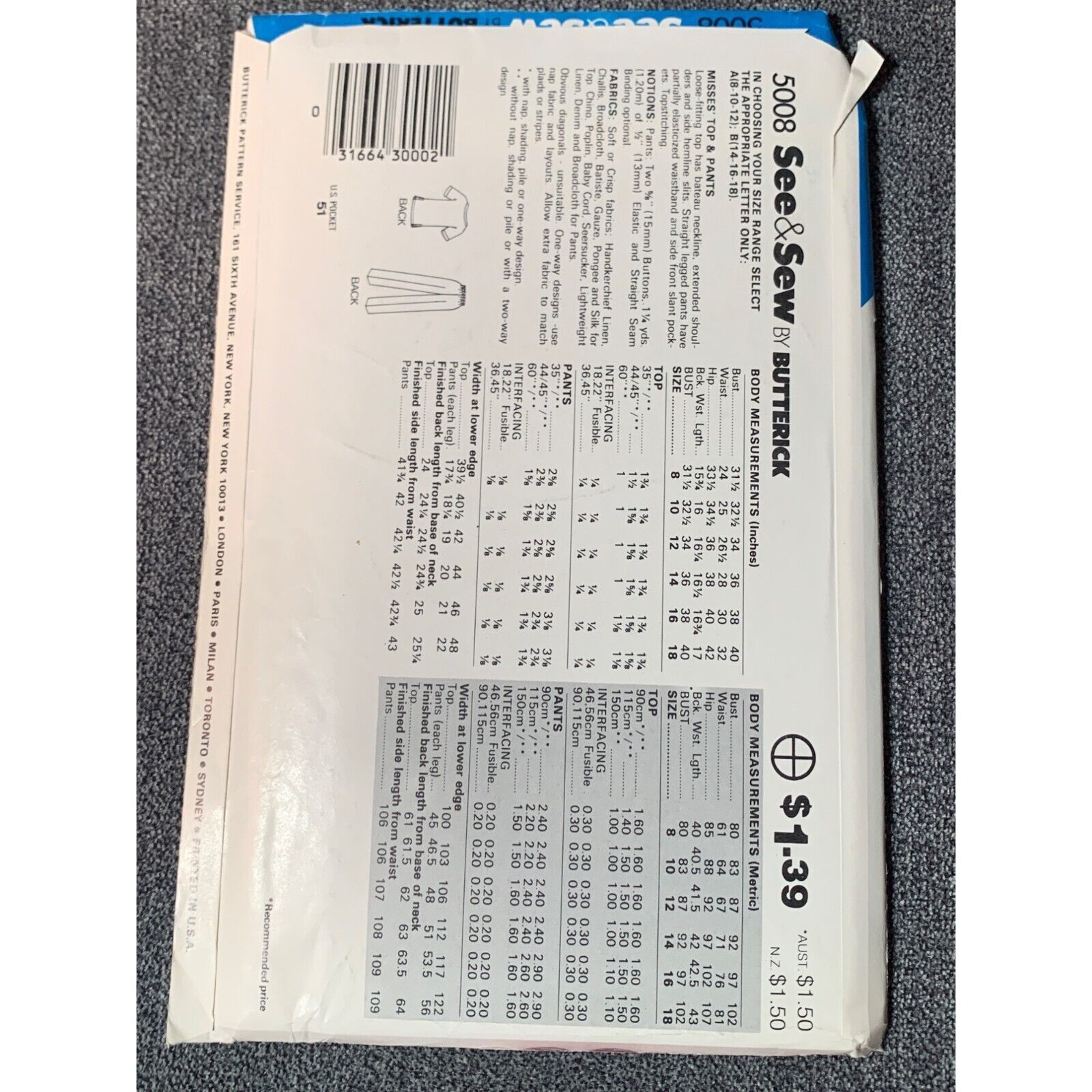 Butterick Misses Shirt Pants Sewing Pattern sz 8-12 5008 - uncut