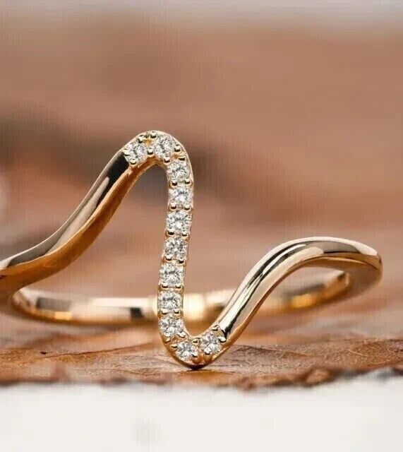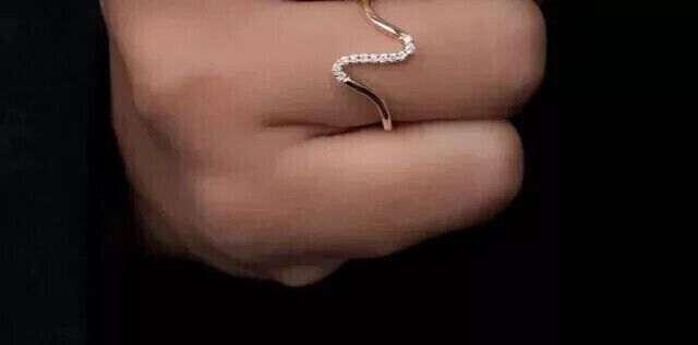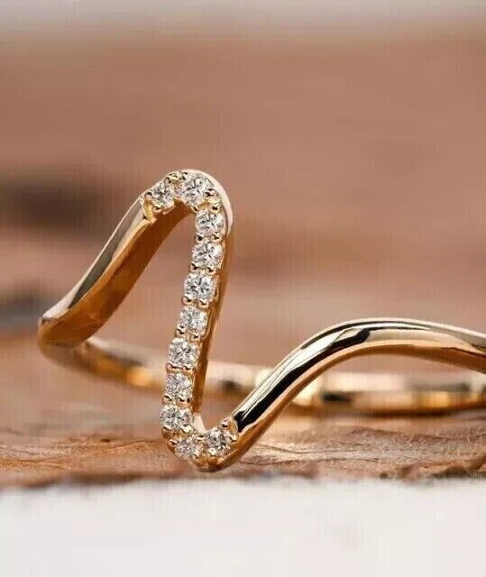 1.20Ct Round Cut Lab-Created Diamond Women Wave Ring 14k Yellow Gold Plated