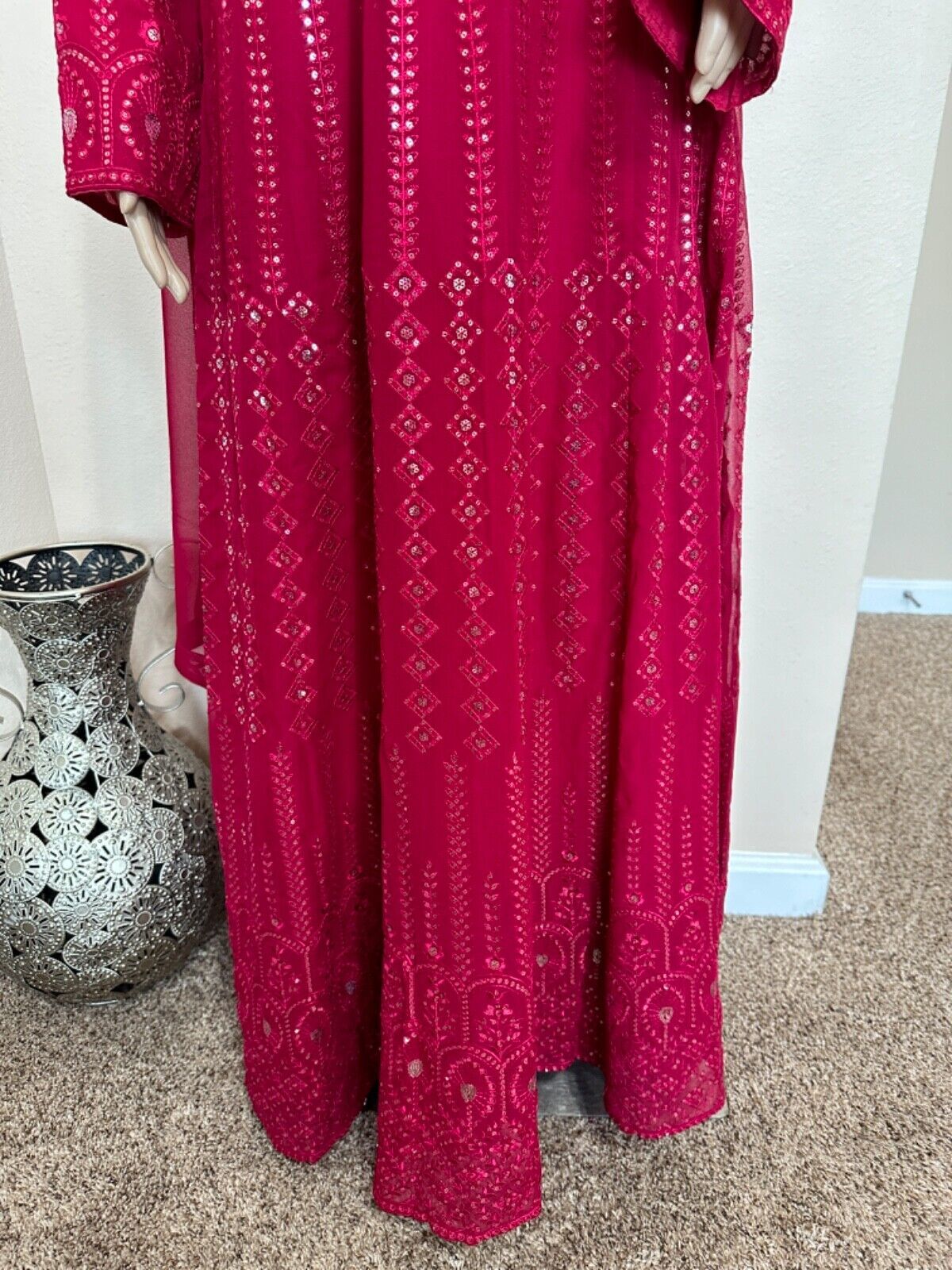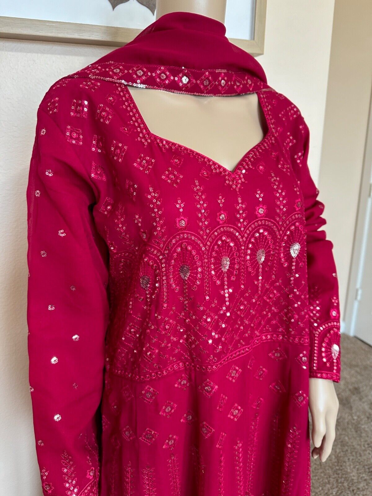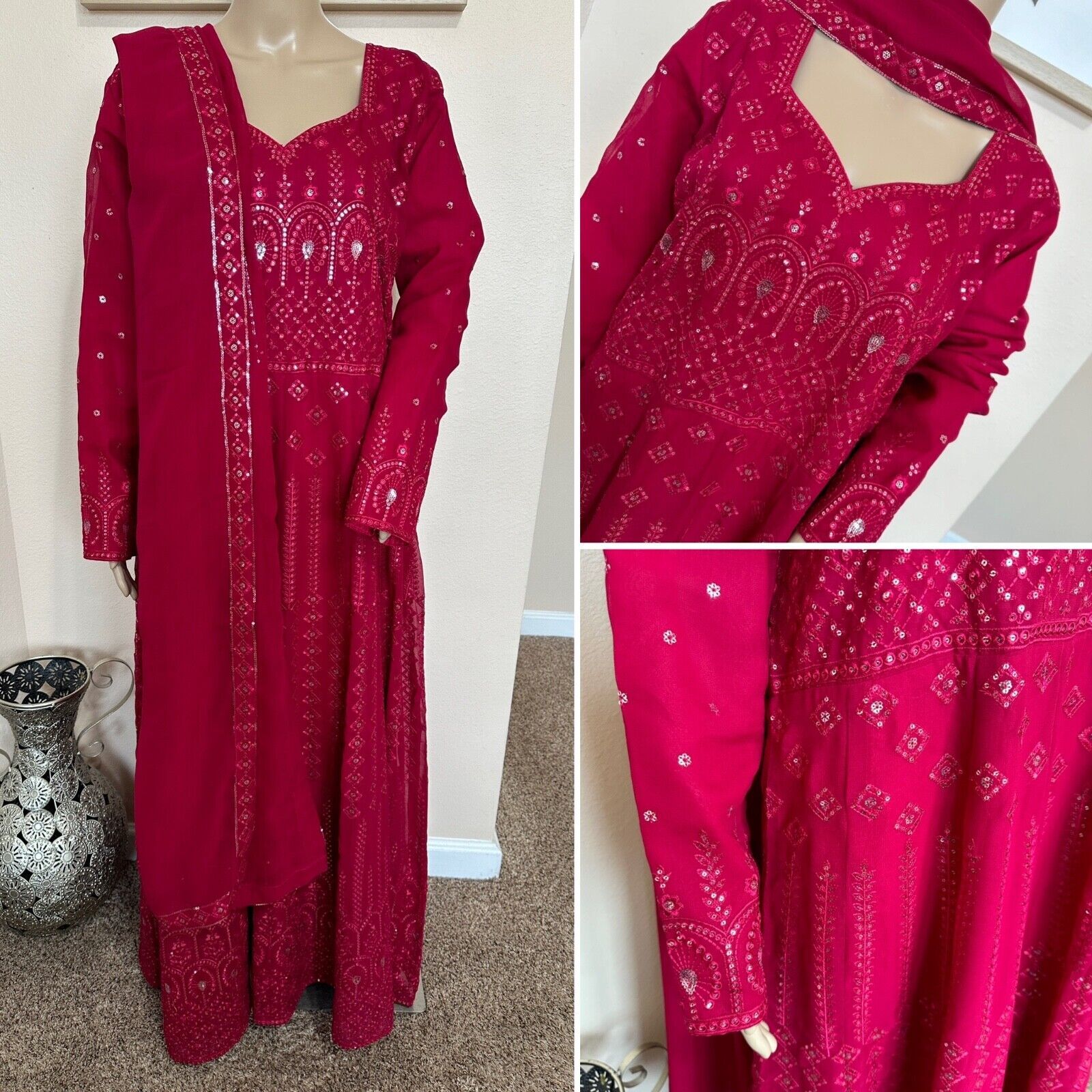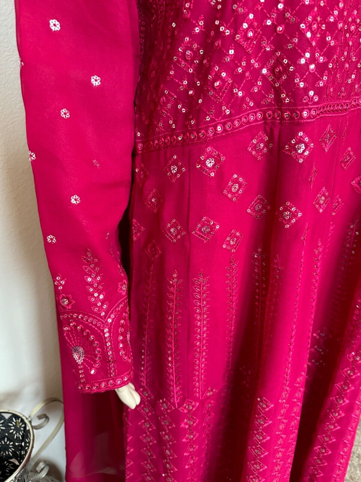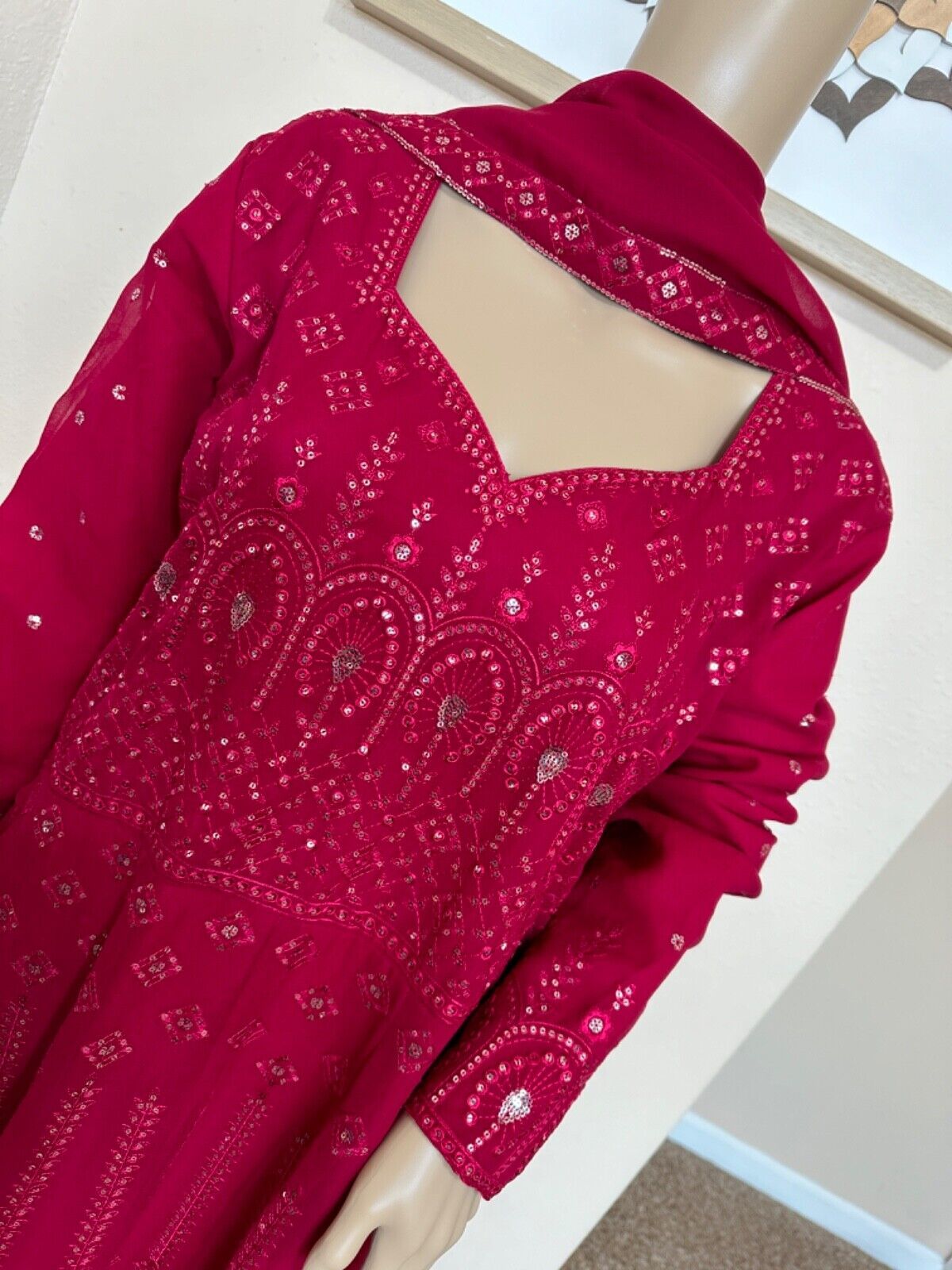 Pakistani Hot Pink georgette Long Maxi Style Embroidered Sequins Dress,M