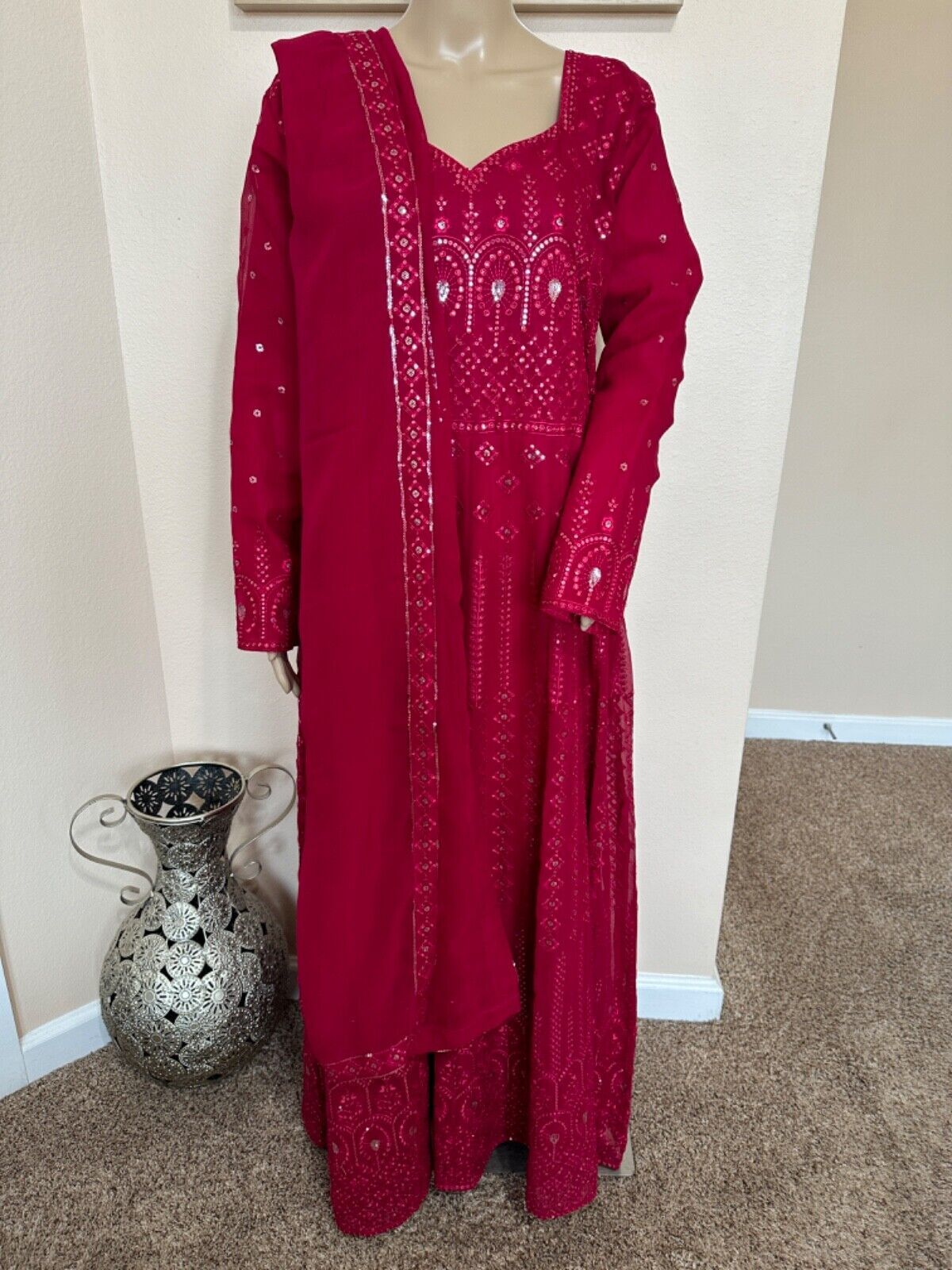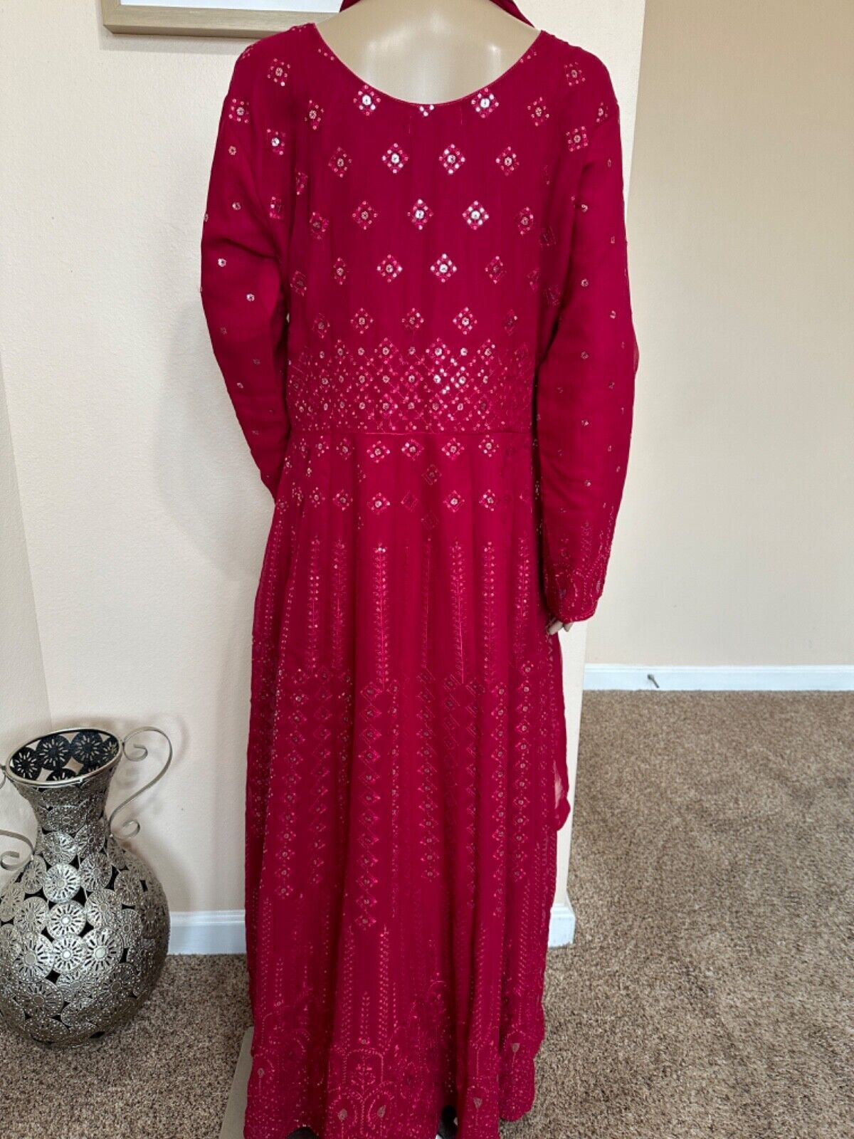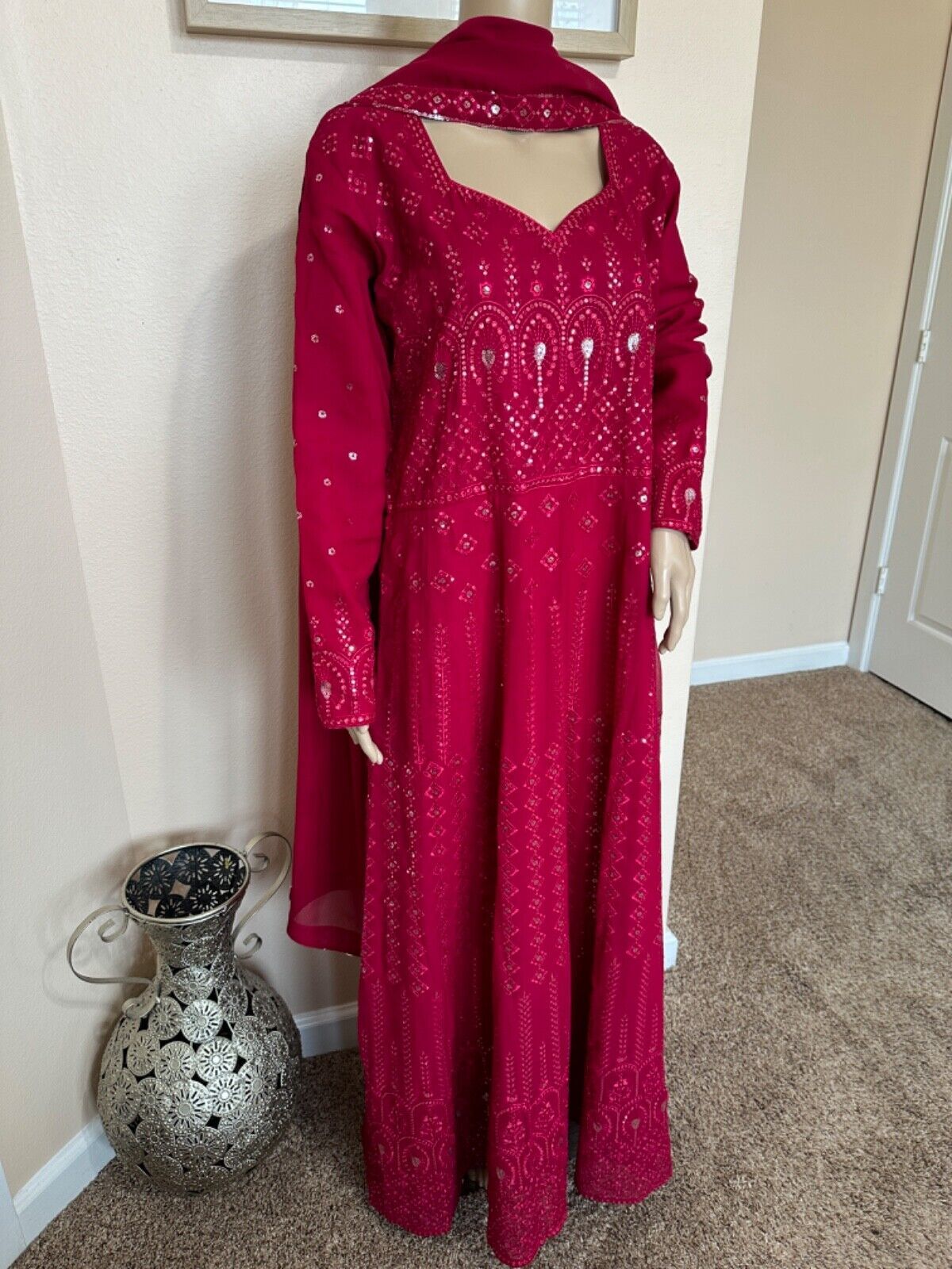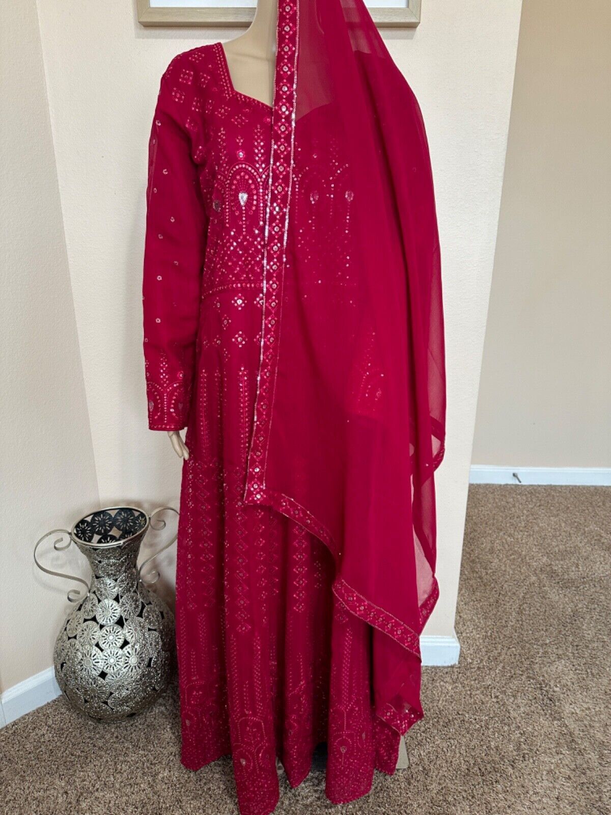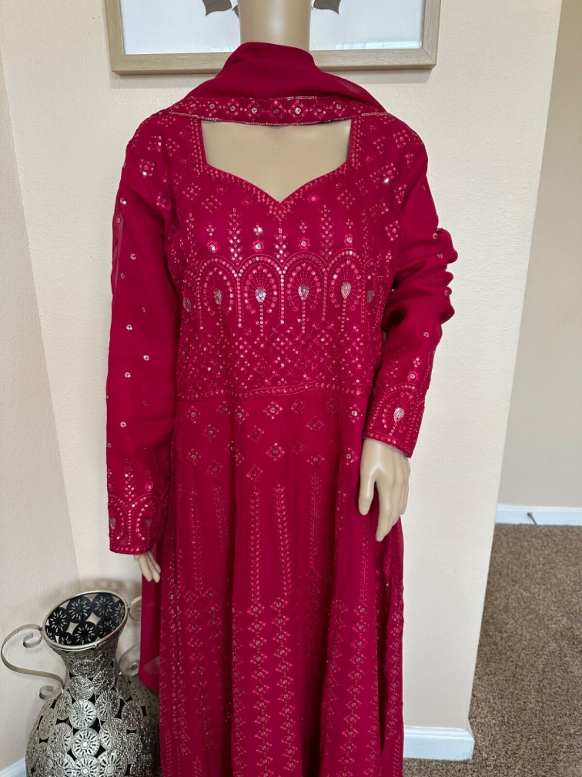 Pakistani Hot Pink georgette Long Maxi Style Embroidered Sequins Dress,M