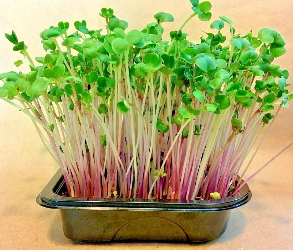 The microgreen is a mini version of the full-grown veggie when it comes to taste. Grow in container with about 1/2"potting soil. Even though it is a small plant that is harvested after only 6 days, it provides the same intense flavor.