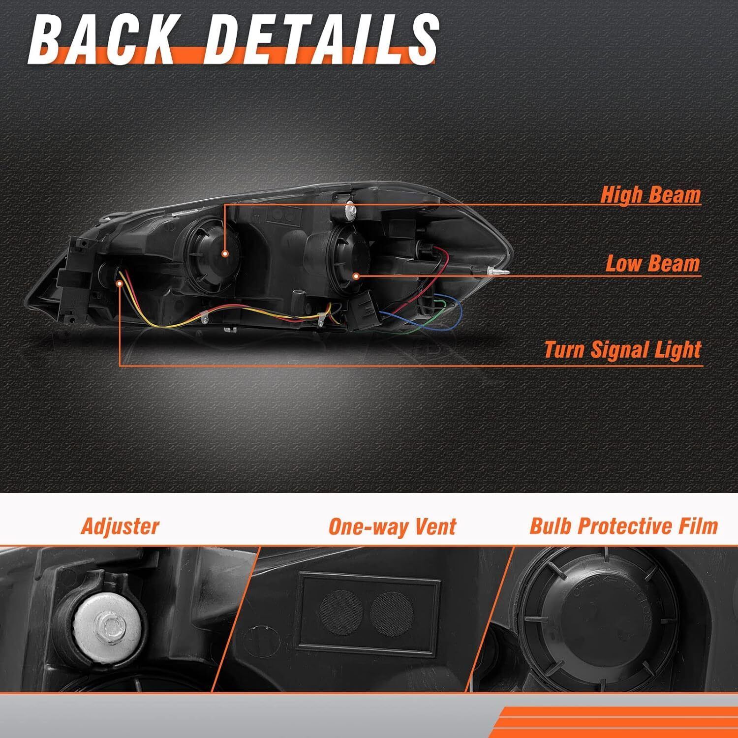 Vehicle compatibility: headlight assembly compatible with 2006 2007 2008 2009 2010 2011 2012 2013 Chevy Impala / 2006 2007 Chevy Monte Carlo / 2014 2015 Chevy Impala. High-quality materials and fine workmanship: we conduct rigorous quality tests to ensure product performance and durability. IP65 waterproof level avoids any water accumulation in the lamps. Excellent sealing helps you cope with various environments. Brighter lighting: high-quality reflecting bowls and reflectors increase the brightness, making it easier for oncoming traffic to notice you at night and improving driving safety. With an adjuster, you can easily adjust the light as needed. Easy to install: plug-and-play design allows easy and fast installation. No complicated installation techniques or drilling required! Comes in pairs with driver passenger sides. Excellent after-sales service: Our products have a 2-year warranty. If you encounter any issues after your purchase, our after-sales service team will help you solve them in time.