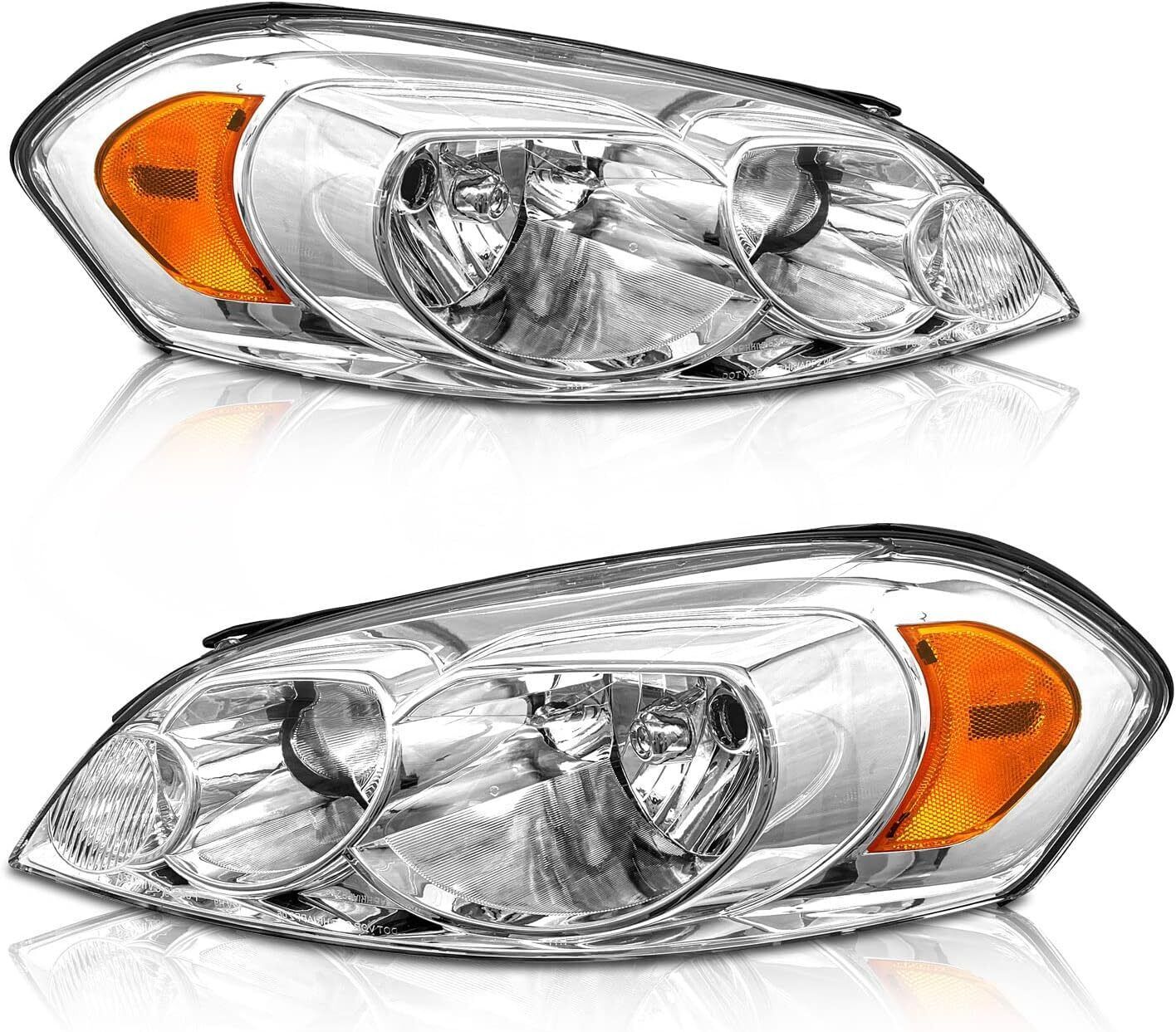 2006-2013 Chevy Impala Headlights Assembly for 2014-2015 Chevy Impala Limited / 2006-2007 Chevy Monte Carlo Chrome Housing Amber Reflector Replacement Driver and Passenger Side
