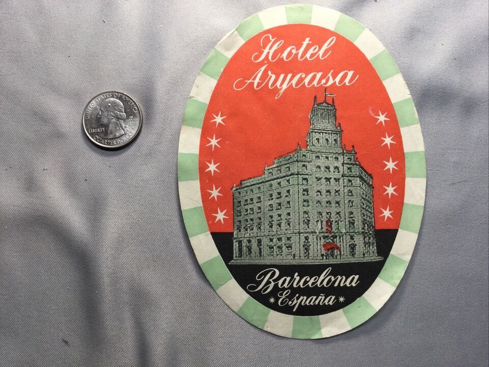 ORIGINAL Vintage Travel Decal Sticker, Luggage Label - HOTEL ARYCASA BARCELONA