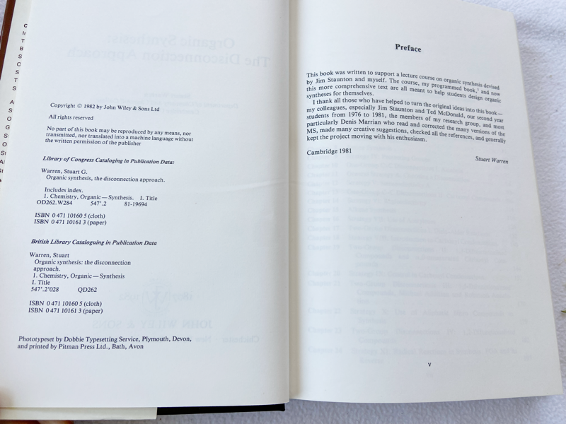 1982 HC Organic Synthesis: The Disconnection Approach by Warren, Stuart