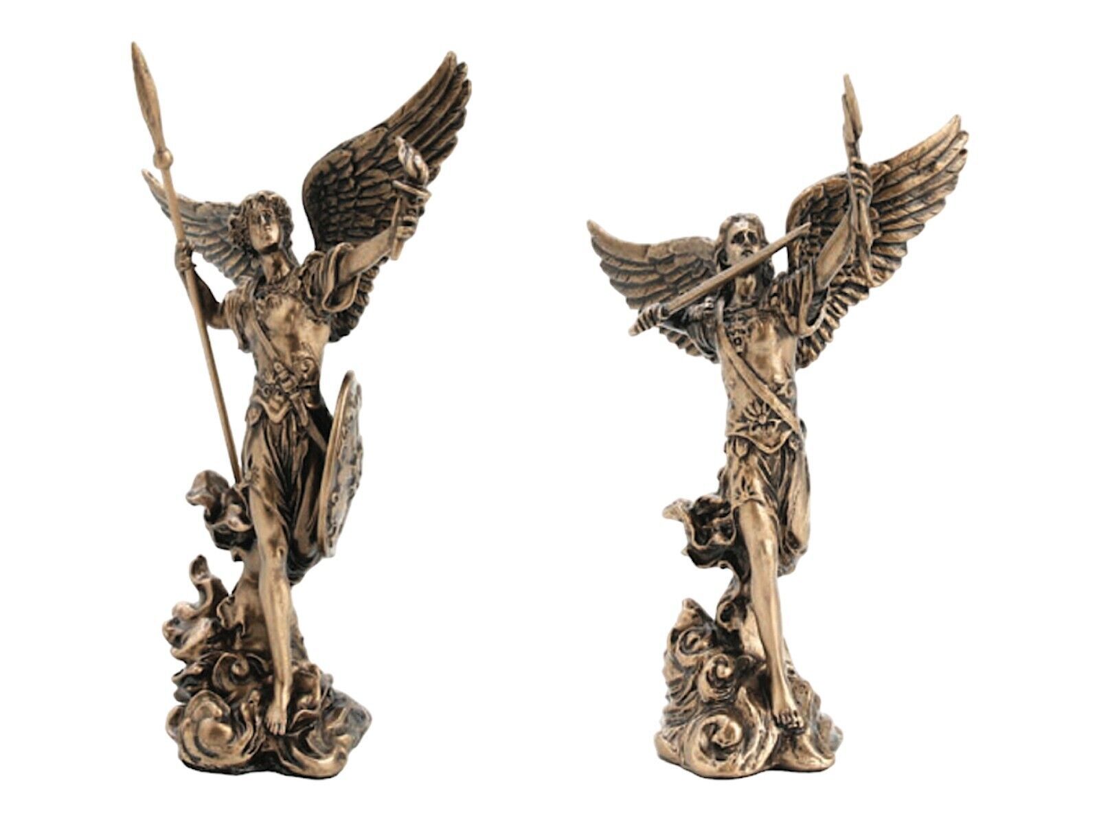 Set of 2 St Remiel Uriel Archangel Statue Miniature Cold Cast Bronze and Resin