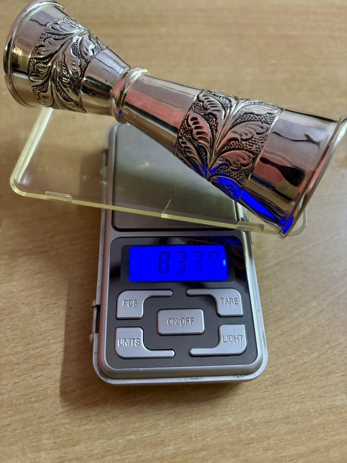 Plata de ley 925 Jigger doble cara clavija medida, 84 gm, 12 cm de longitud
