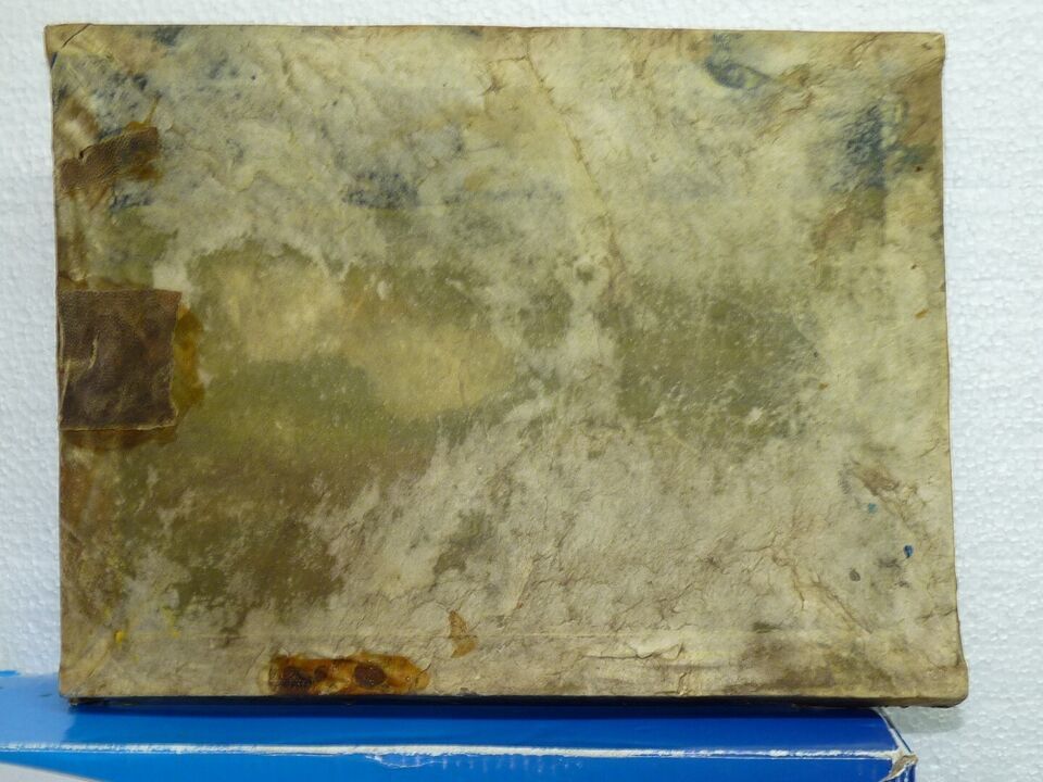 Two patches of the natural Hide visible from the verso, visible from front middle and top right