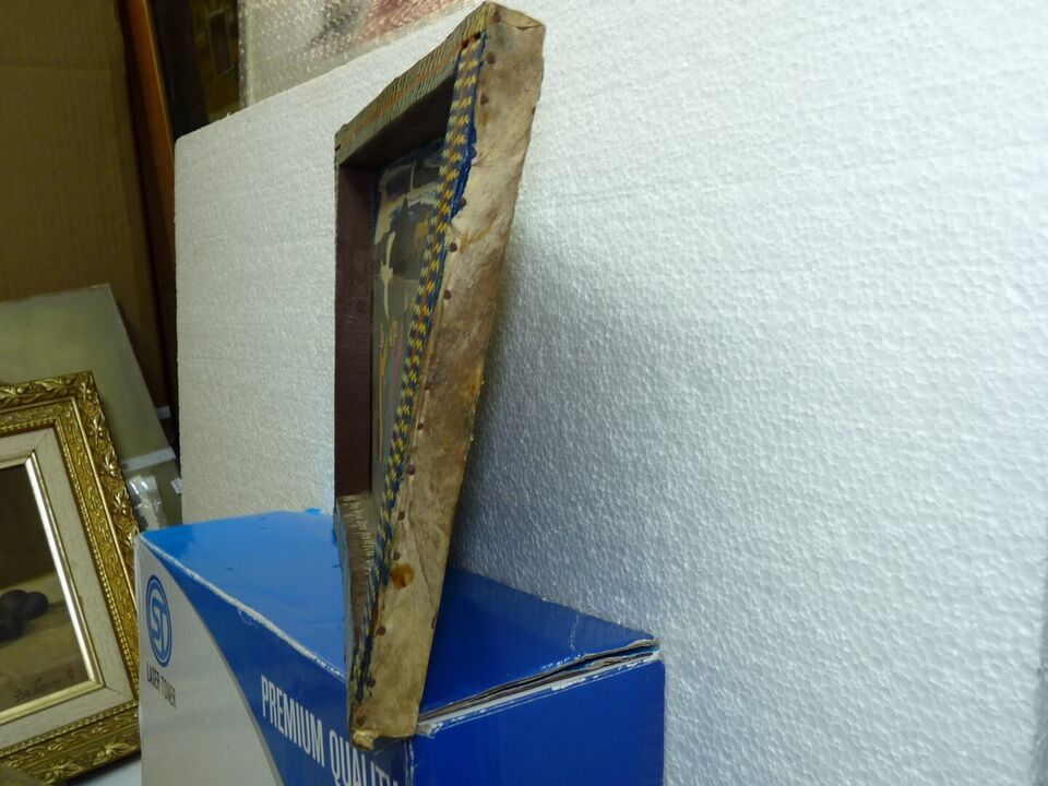 Note: the frame is twisted out of shape and needs re-stretching/reframing!