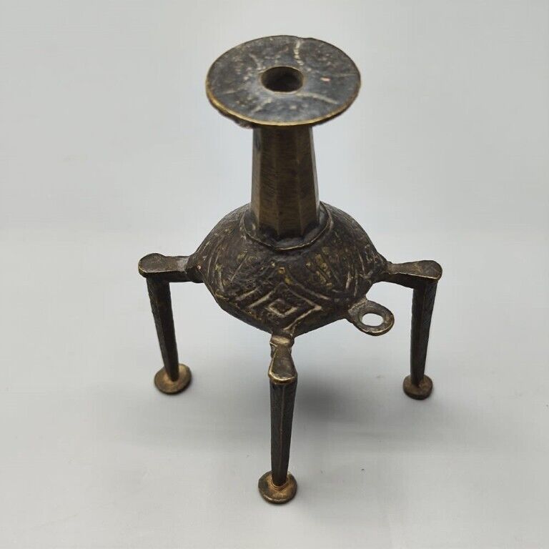This Antique Bronze Kohl flask was traditionally filled with Kohl, used as eye-liner makeup .A hardened reed with a flat end would be used to apply it to the eyes like a brush