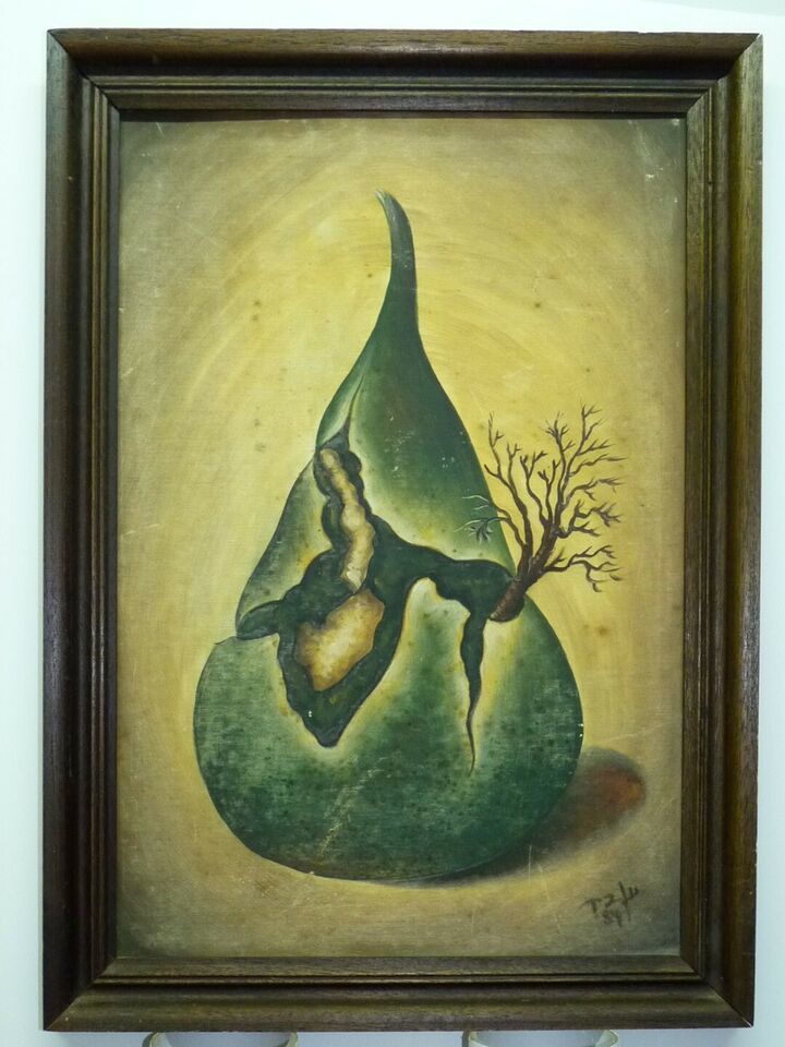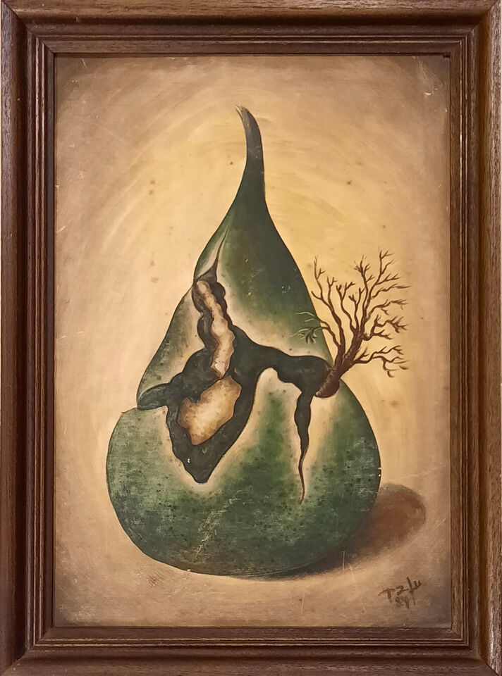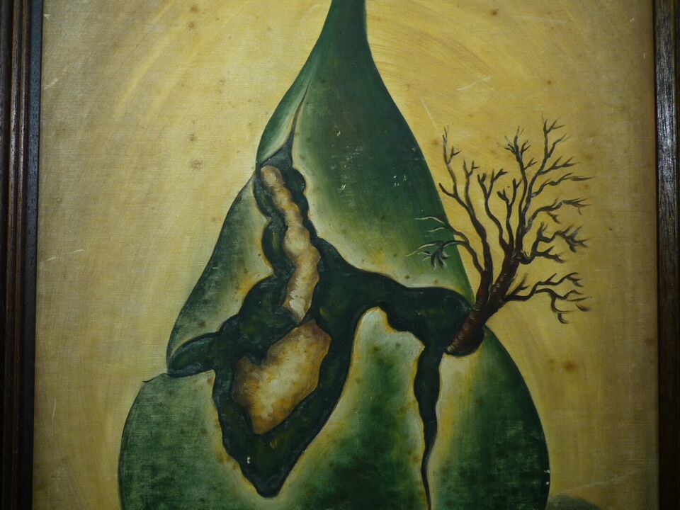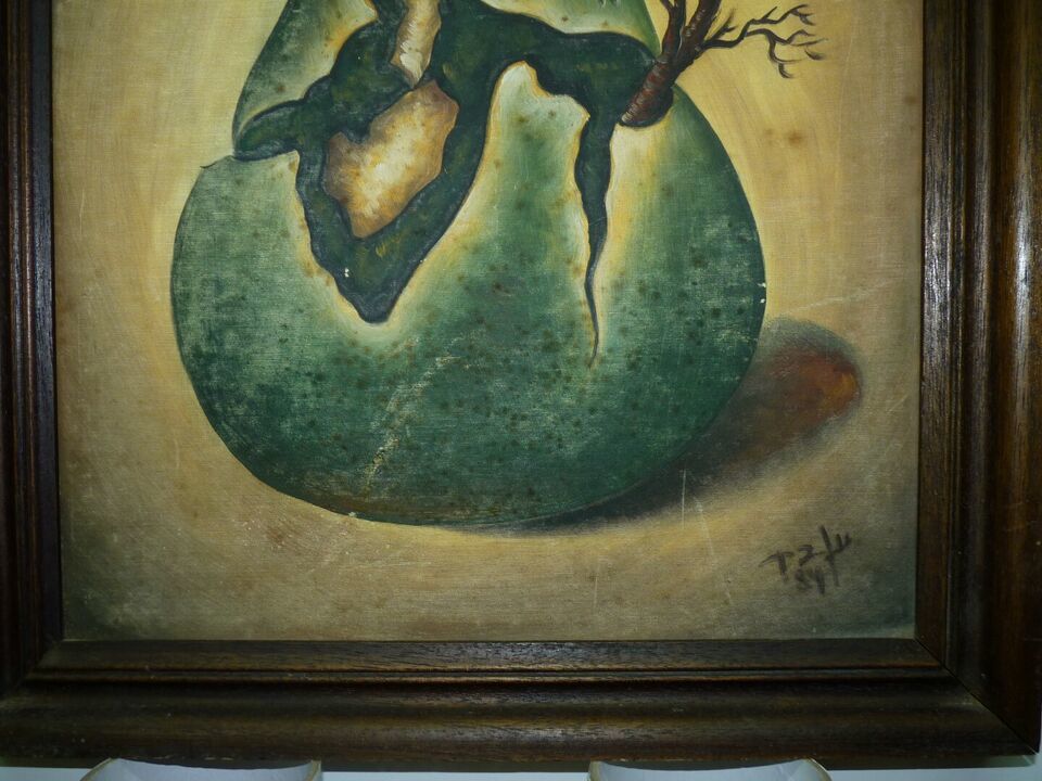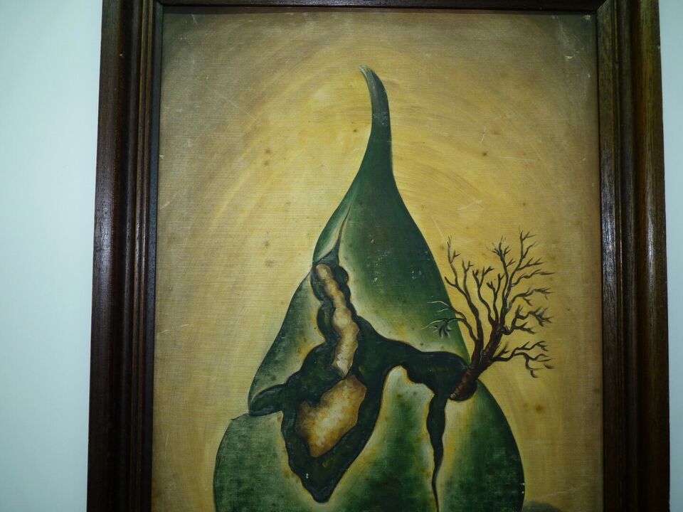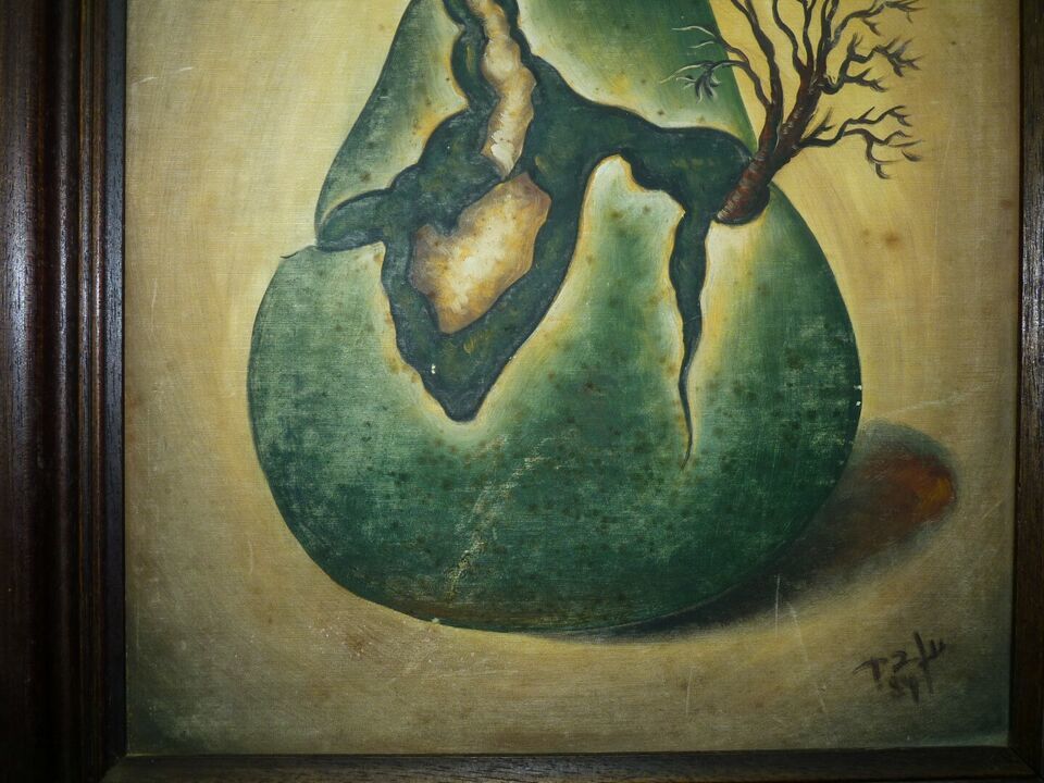 Superb Vintage Surrealistic Signed Oil Painting The Pear and Ragged Tree 50 X 33