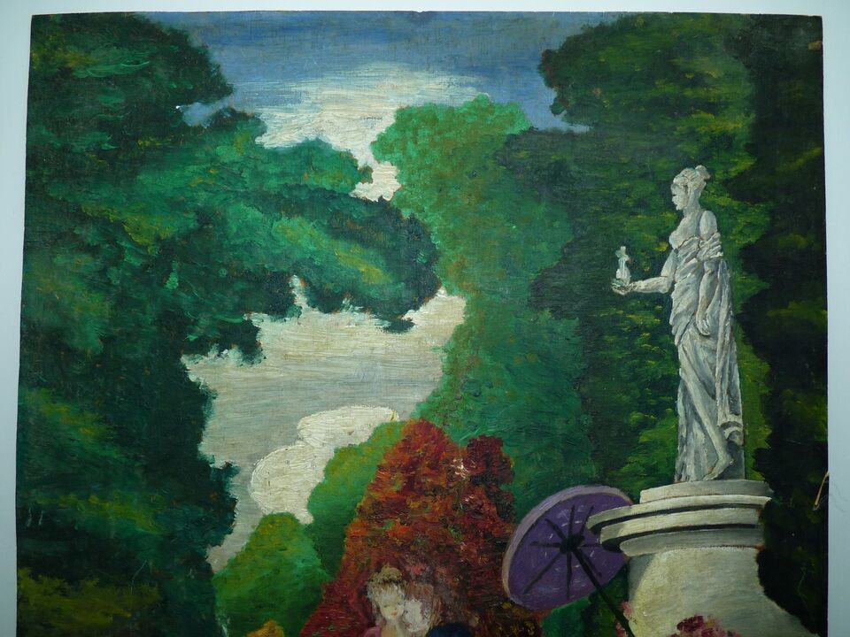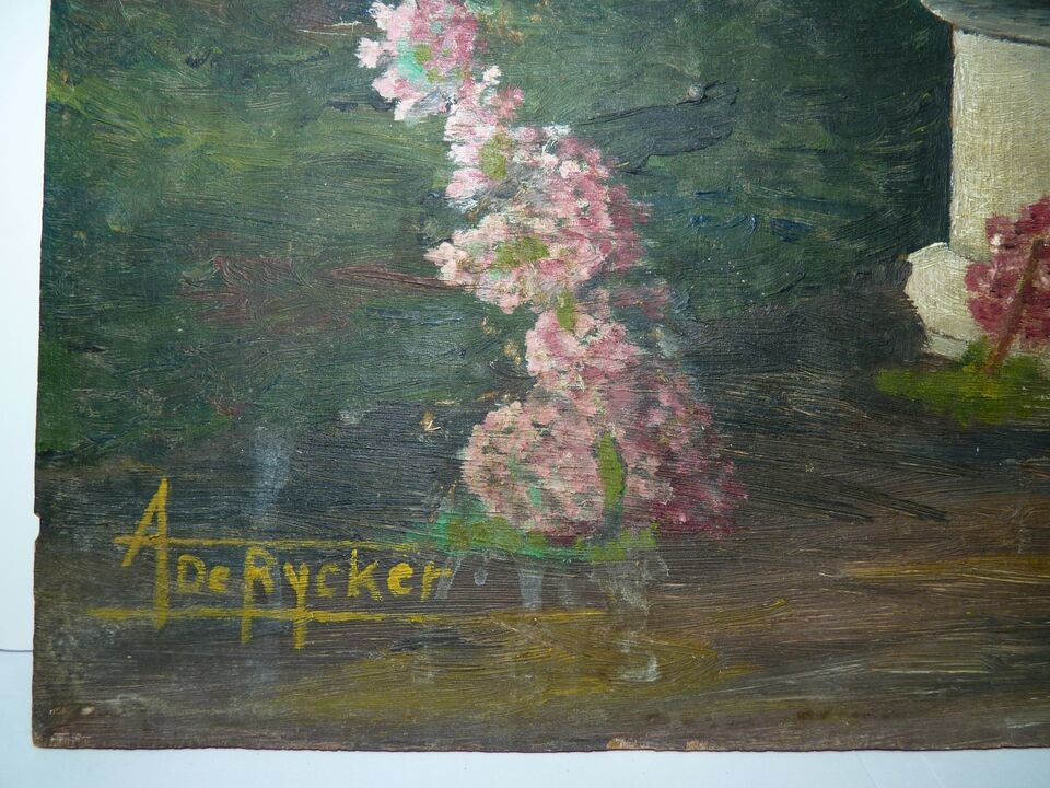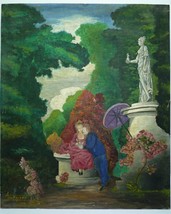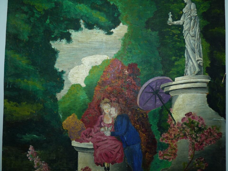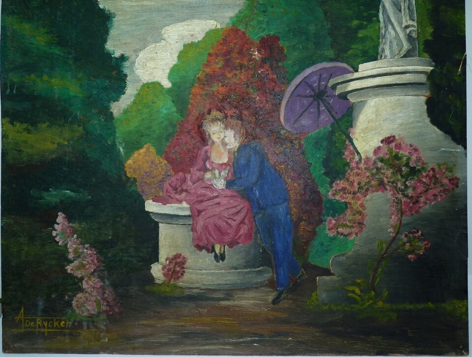Vintage Dutch Oil Painting Signed de Rysker, Romantic Couple in Garden 60 x 50cm