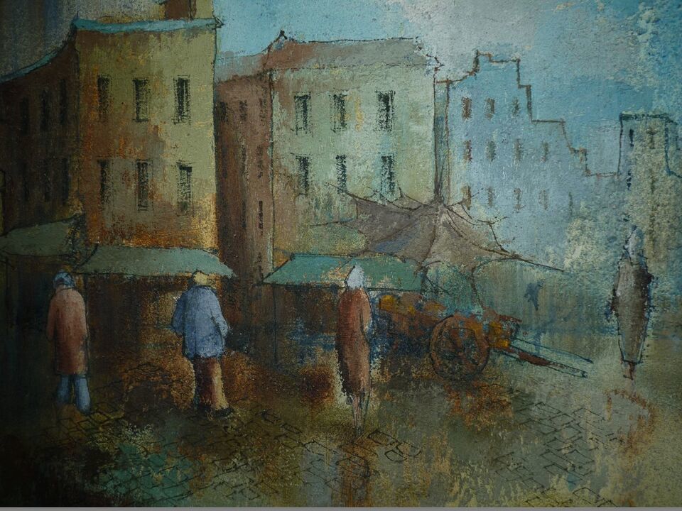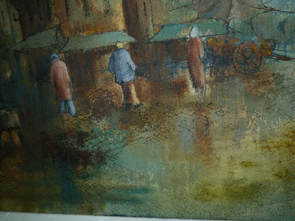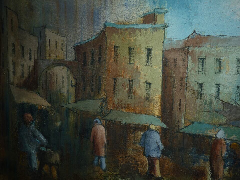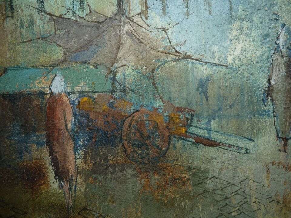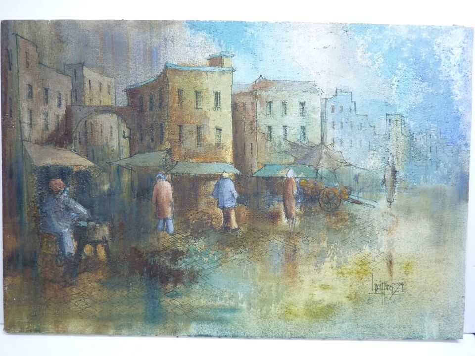 Old Vintage Italian Painting Oil/Canvas Market Scene Signed Luciprazi, 61 x 91cm