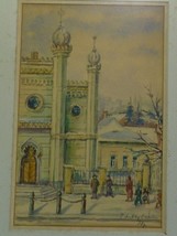 Vintage Judaica Painting The Great Hapoca Heolog Synagogue Cluj Romania 23 x16cm
