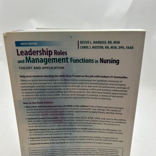 Taking an active learning approach, this Ninth Edition emphasizes the symbiotic elements of leadership and management. All professional nurses today face limited resources and emerging technologies, and this book prepares students through up-to-date and comprehensive coverage of leadership and management concepts, ranging from managing conflict and working collaboratively to organizing patient care and staffing. Benefitting students who often have limited opportunities to observe high-performing middle- and top-level managers in practice, a variety of real-world scenarios are featured throughout and provide opportunities for hands-on learning.