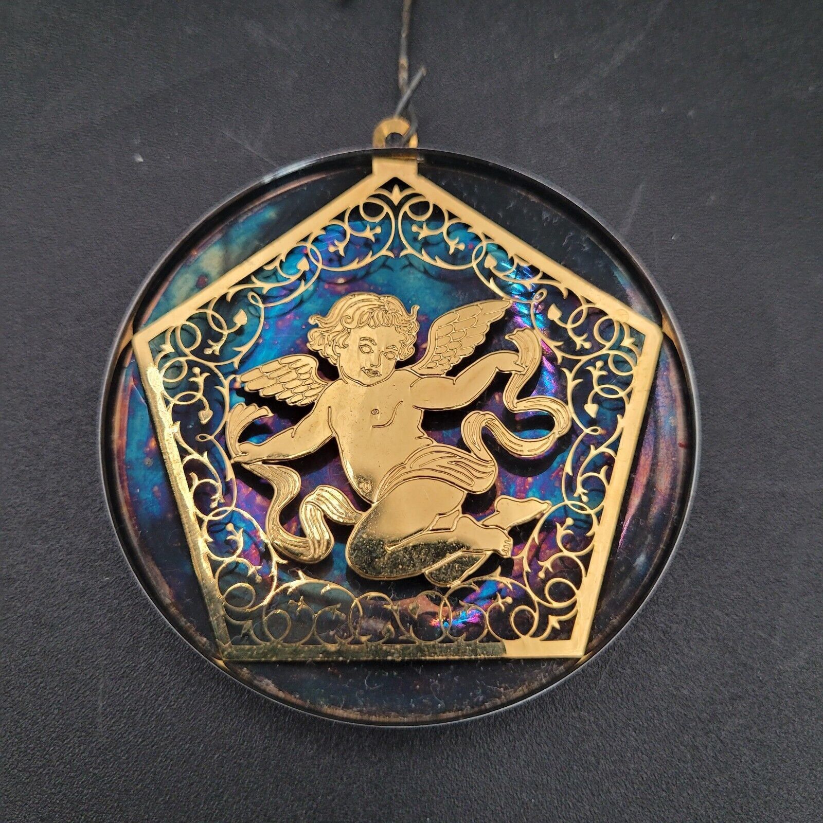 Vintage Franklin Mint Gold Tone Angel Cherub Christmas Tree Holiday Ornament
