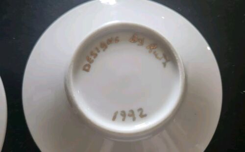 Set VTG Design By Ruth Candestick Holders Carrier 1992 Porcelain Ceramic Floral