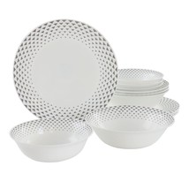 Ultra by Gibson Cane Peak 12 Piece Opal Glass Dinnerware Set in White With Grey
