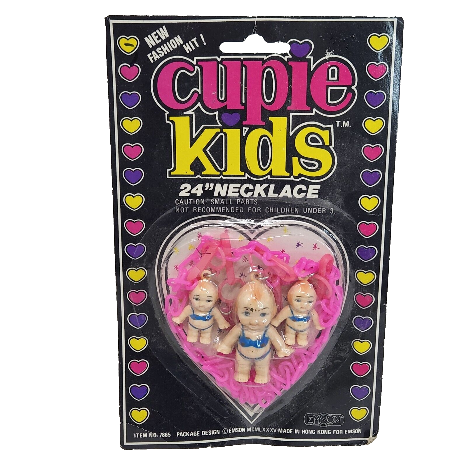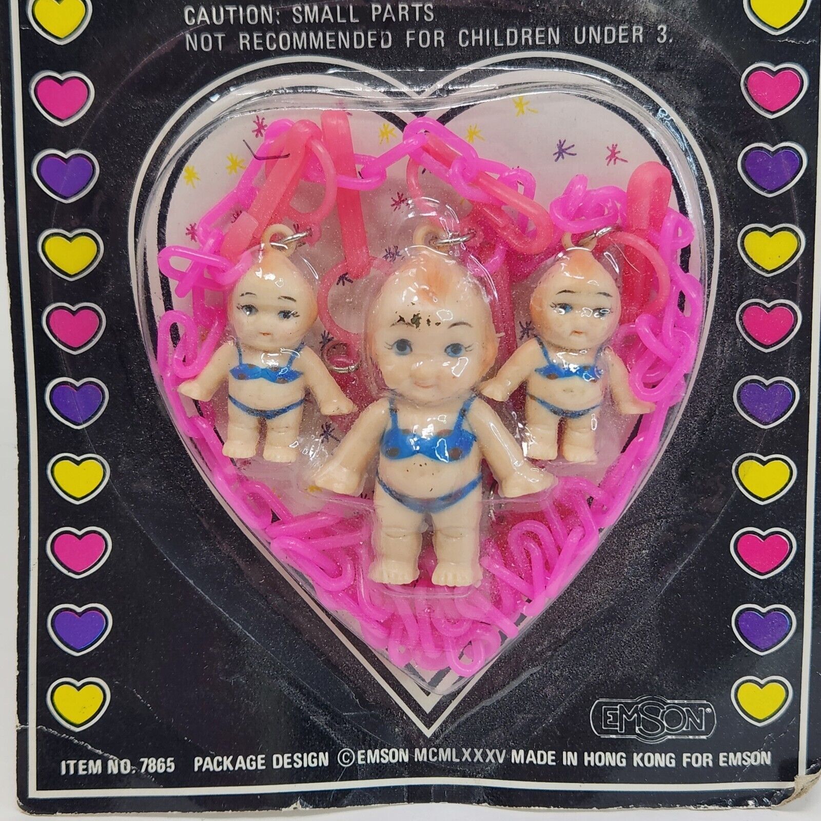 VINTAGE 1985 EMSON CUPIE KIDS 24" PINK NECKLACE W/ 3 DOLL CHARMS NEW SEALED