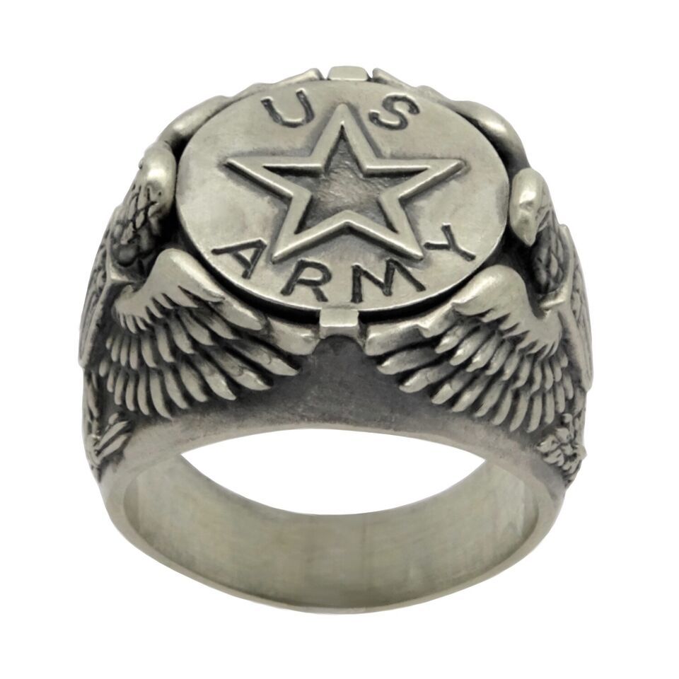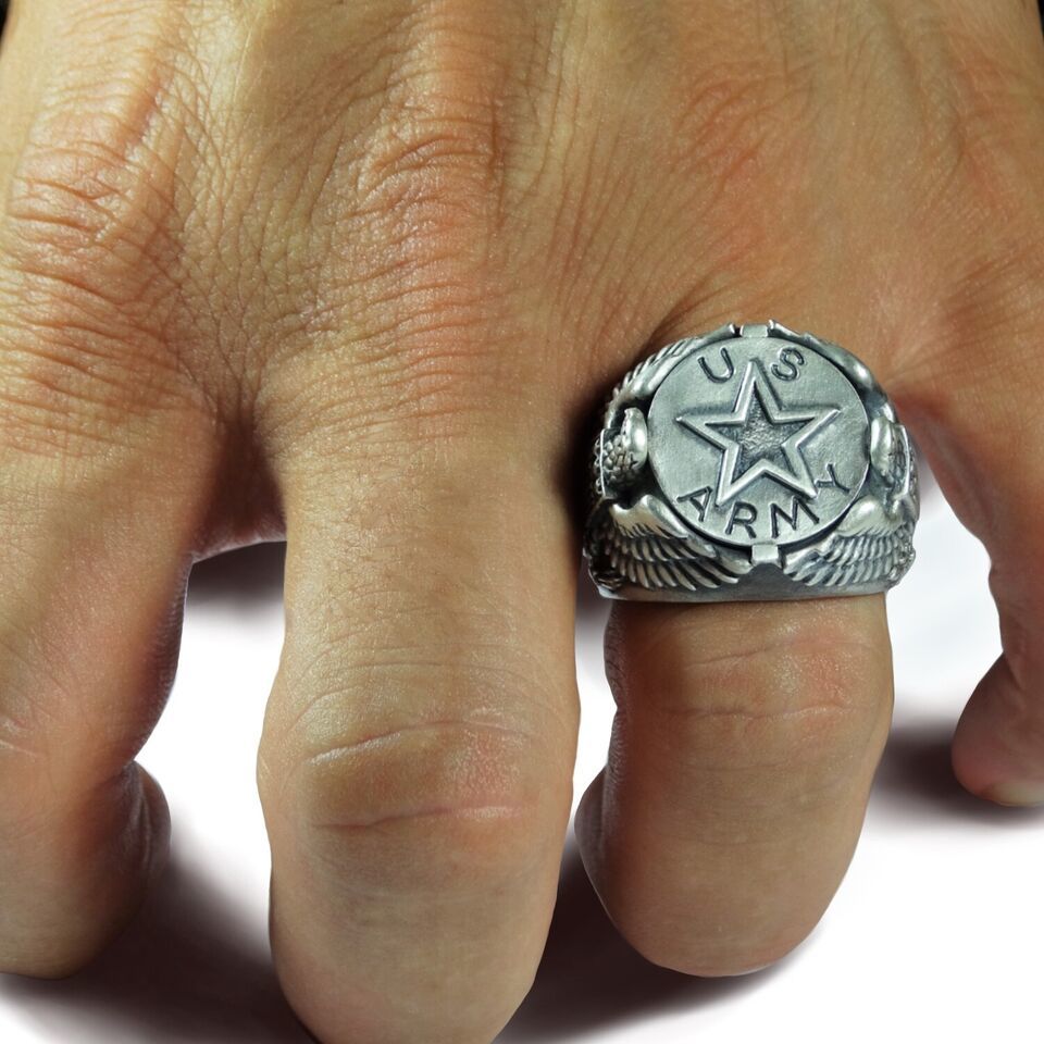 HANDCRAFTED STERLING SILVER U.S. ARMY FORCES STAR MILITARY AMERICAN EAGLE STYLE MEN?S RING