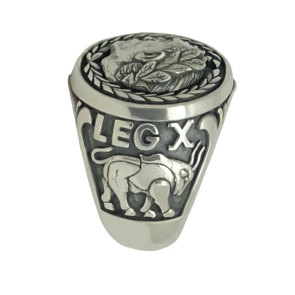 Roman Emperor Gaius Julius Caesar Sterling Silver Men's Ring SPQR Army Legion X