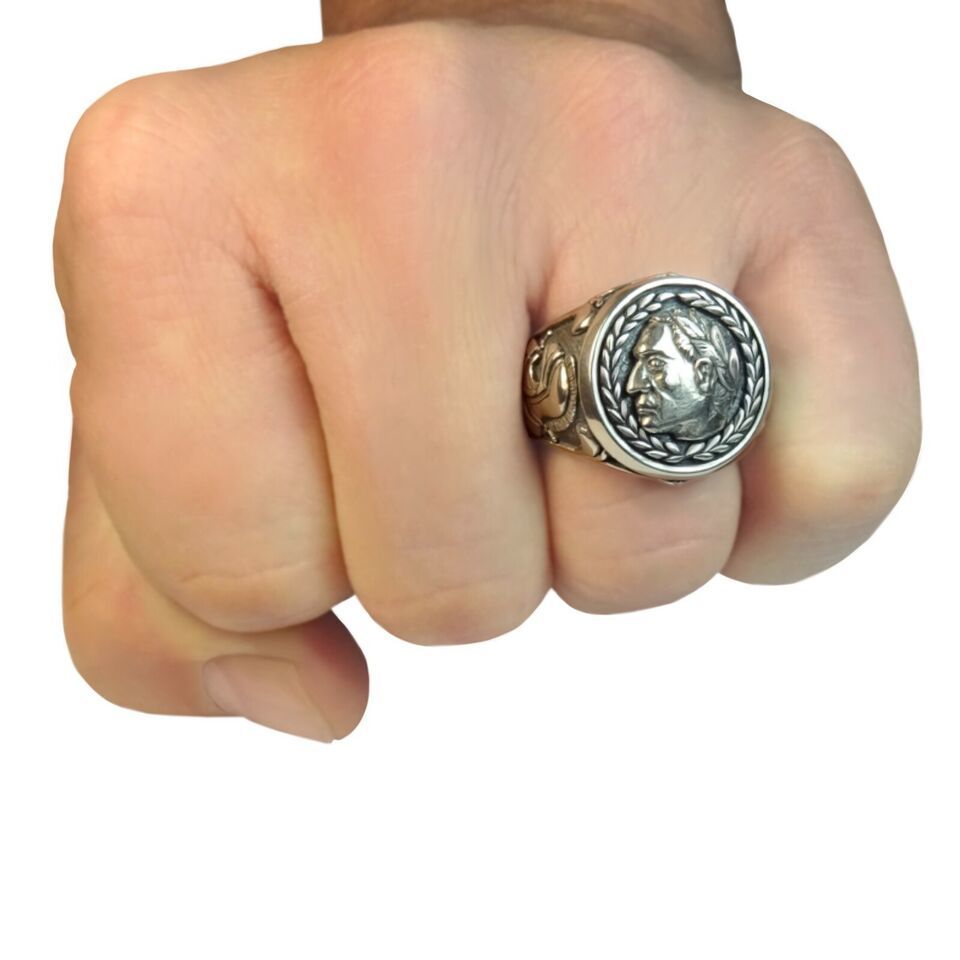 Handmade Roman Empire Gaius Julius Caesar men?s ring. There is a very detailed