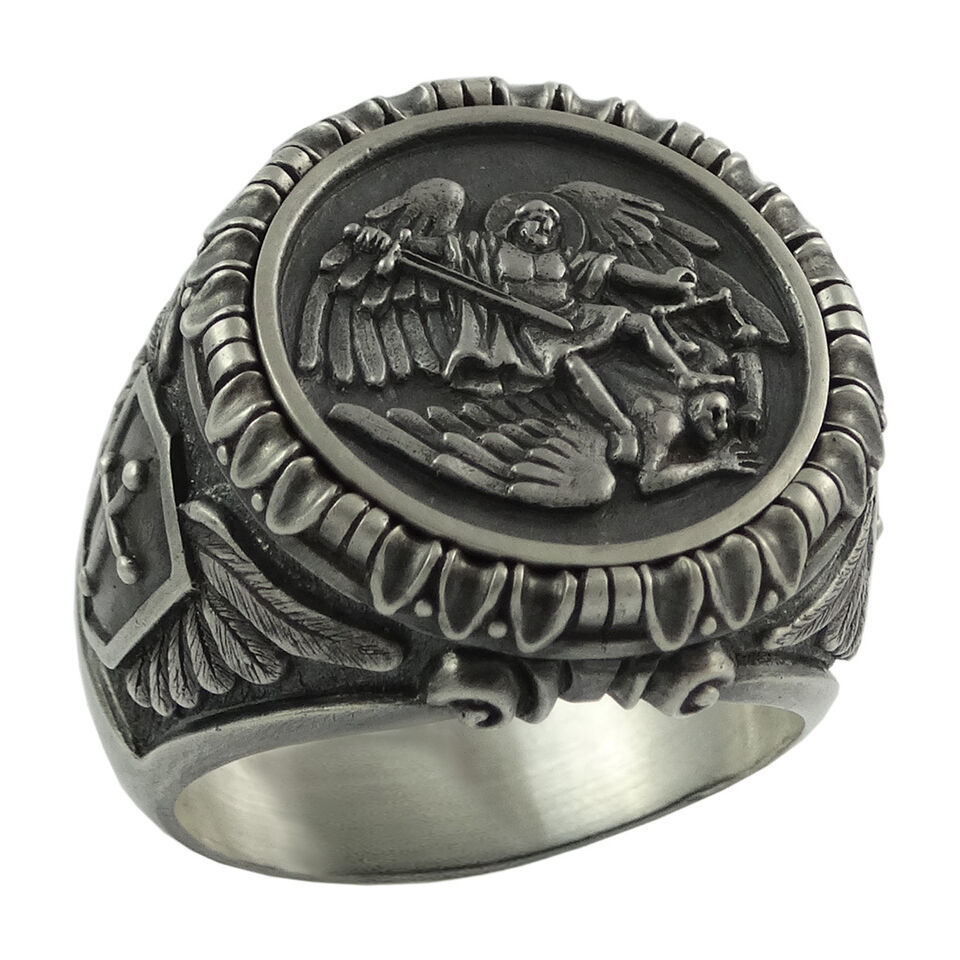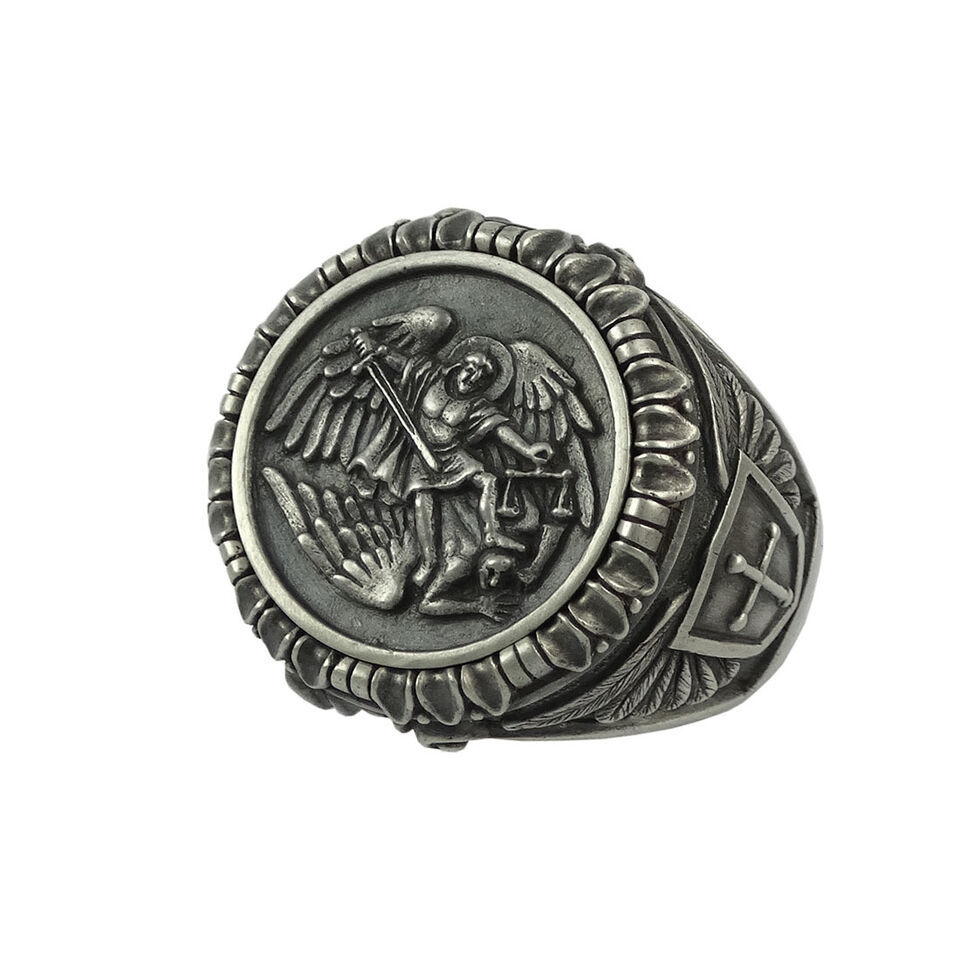 Saint Michael Archangel Sterling Silver Men's Ring Handcrafted Army Military
