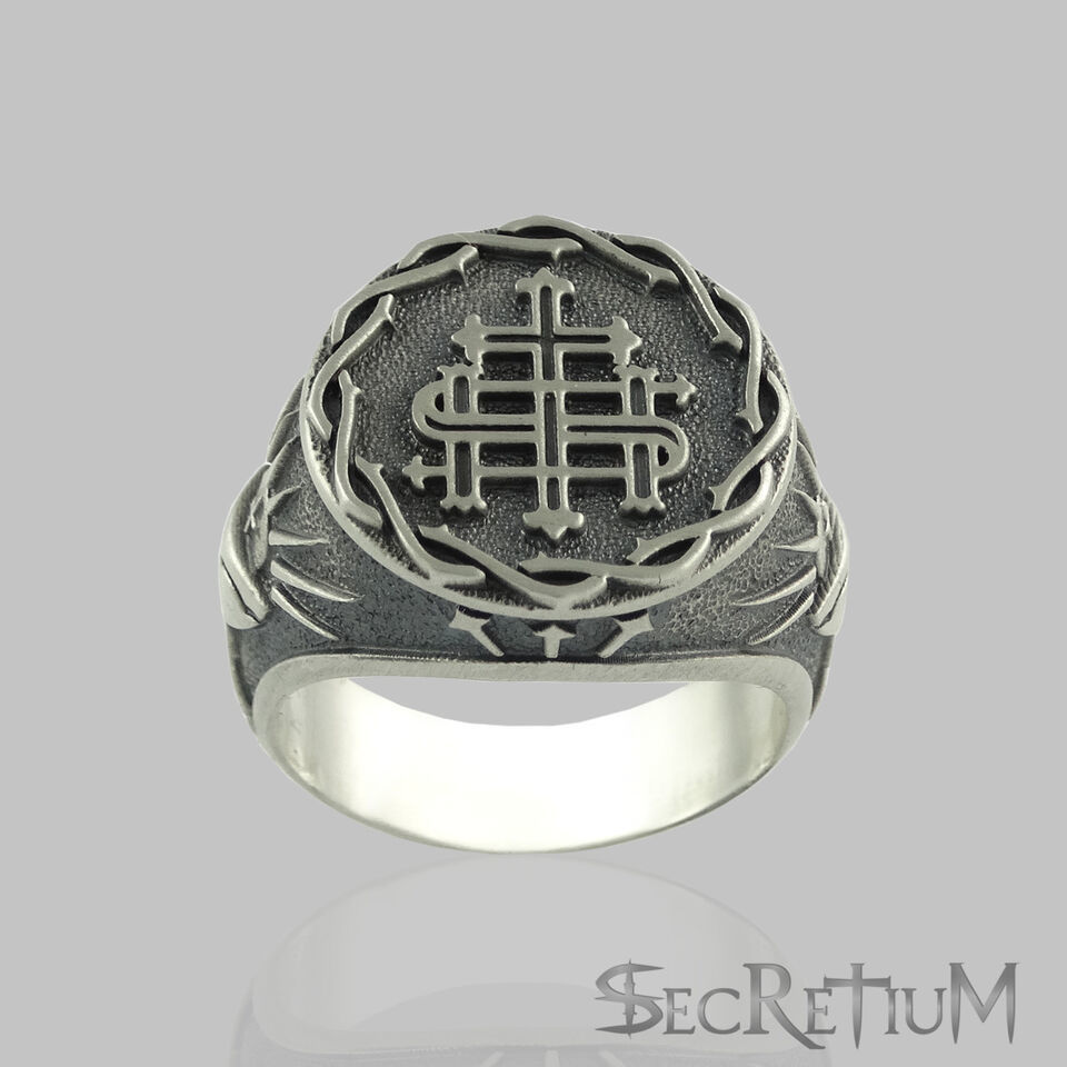 ?IHS?, The Holy name of Jesus sterling silver men?s ring