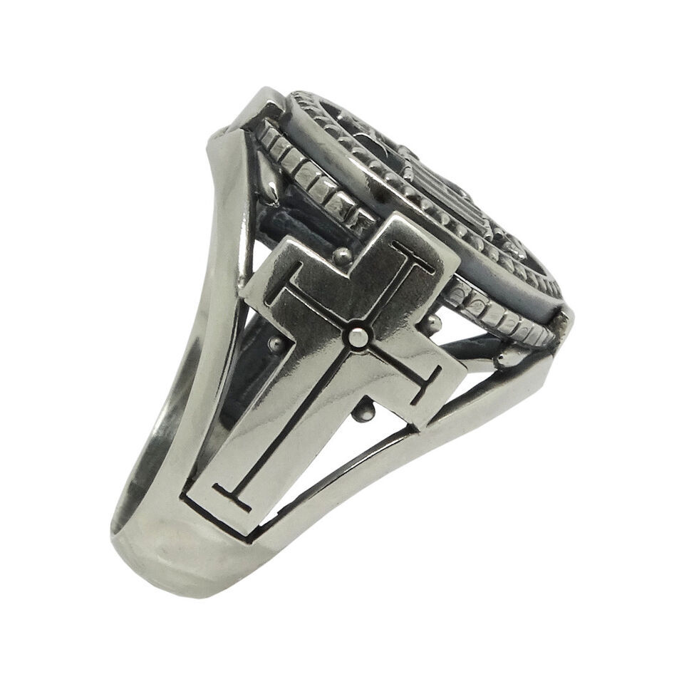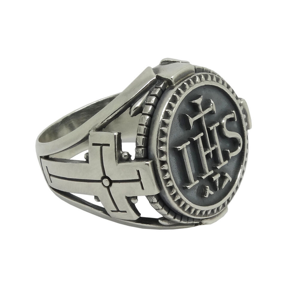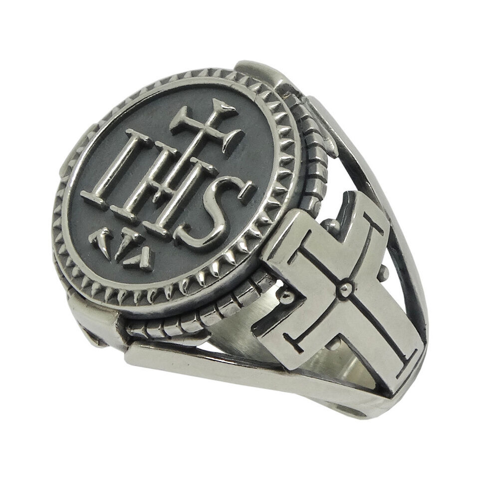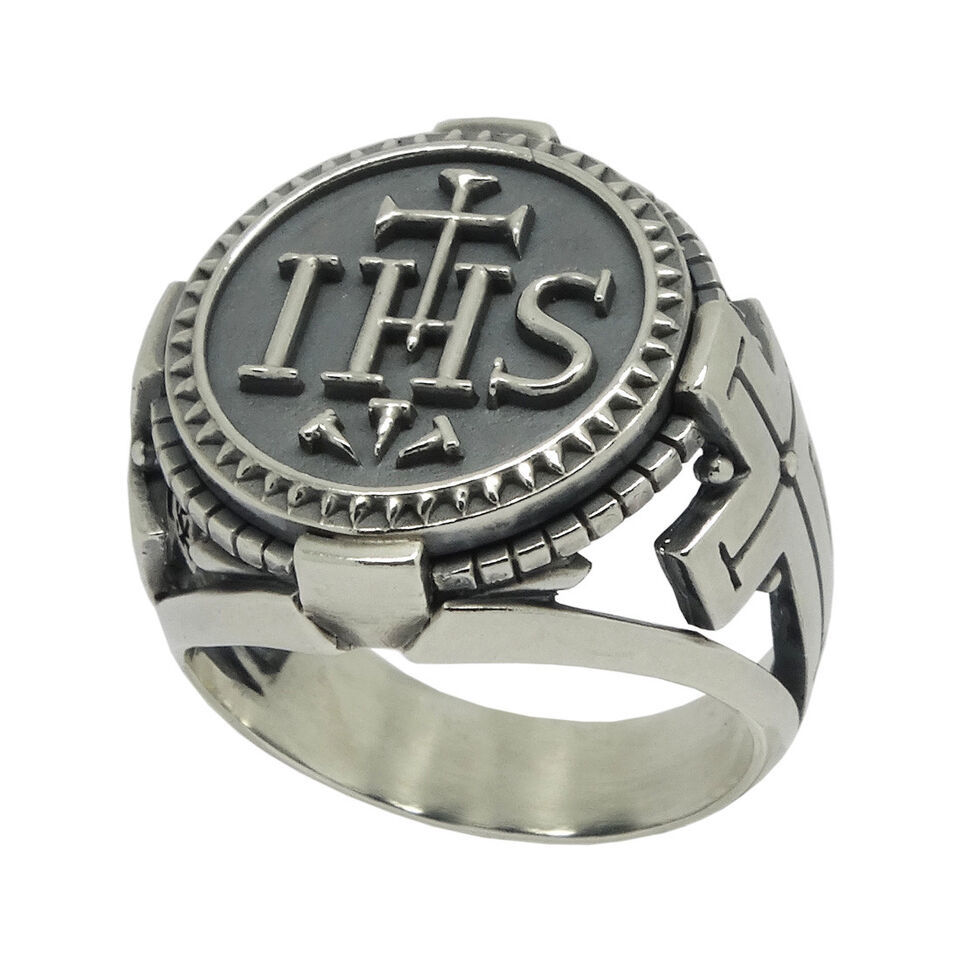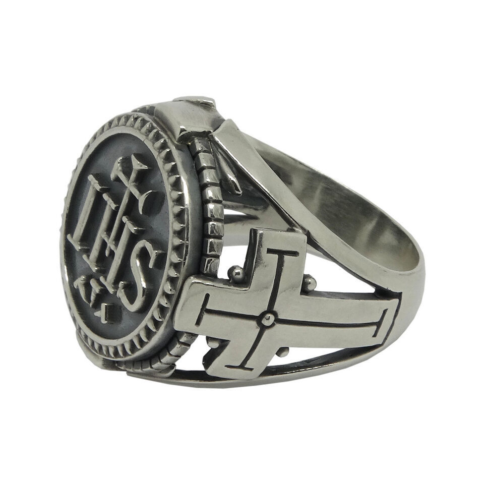 Jesuit Sterling Silver 925 IHS the Holy Name of Jesus Cross Men's Coin Ring